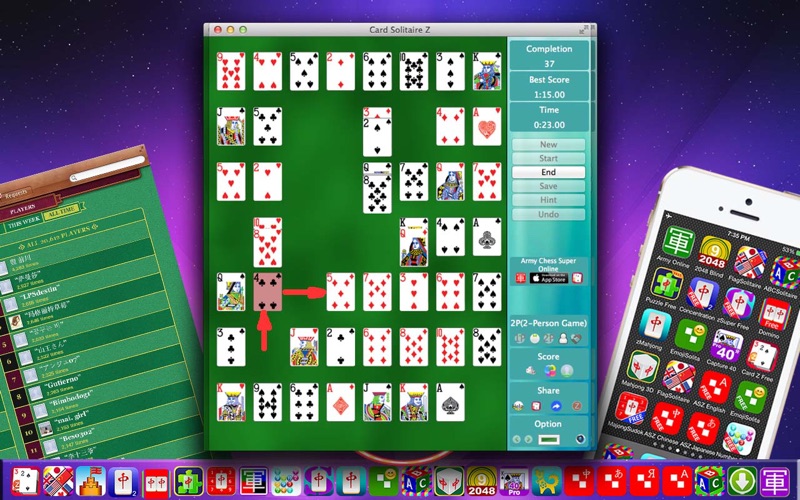 扑克接龙(推推通通)是一个独特,令人上瘾的和兴奋的游戏,它比传统的纸牌游戏更有趣! 扑克接龙吸收了中元麻将中梦幻般的推推通通的功能,每次当你推动卡片的时候,你都会感受到它充满了变化和希望。 ***游戏规则 按照递减顺序,红色和黑色交替的排列卡片。 ***如何玩游戏 先推一卡片,然后点击另一张卡片。如果这两个卡片连接在相同的一条线上,第一张卡片将被自动被移动到第二卡片上。 ***功能 单人游戏 自动保存游戏 一个提示 无限撤消 结束通知 本地排行榜 全球排行榜 成就 内置示范 通过电子邮件,Twitter,Facebook和微博一键分享 虚拟财富美元 内置的反馈 (serious bug fixed) 改进了游戏功能和用户界面外观