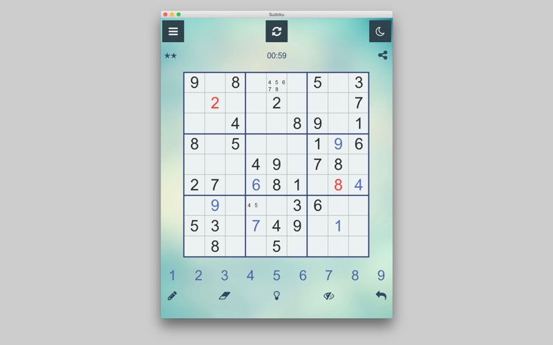 数独(日语:关于这个音频文件数独/すうどくSūdoku)是一种逻辑性的数字填充游戏,玩家须以数字填进每一格,而每行、每列和每个宫(即3x3的大格)有齐1至9所有数字。游戏设计者会提供一部分的数字,使谜题只有一个答案。 一个已解答的数独其实是一种多了宫的限制的拉丁方阵,因为同一个数字不可能在同一行、列或宫中出现多于一次。 这种游戏只需要逻辑思维能力,与数字运算无关。虽然玩法简单,但数字排列方式却千变万化,所以不少教育者认为数独是锻炼脑筋的好方法。 特征 ◆自动错误检查或手动模式自己查看错误 ◆应用程序可以为您提供一个提示(有时间惩罚) ◆数百万不同难度级别的谜题 ◆记笔记以追踪可能的数字 ◆复原 ◆与你的朋友分享数独游戏来挑战他们 ◆简单而干净的界面 ◆保存/载入未完游戏 随时随地挑战你的大脑与数独! 错误修复和性能改进。