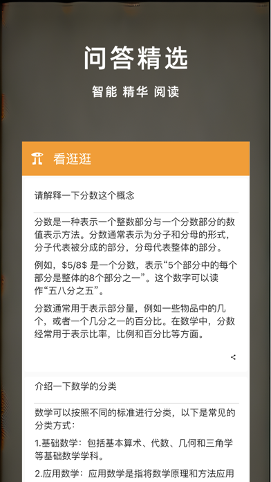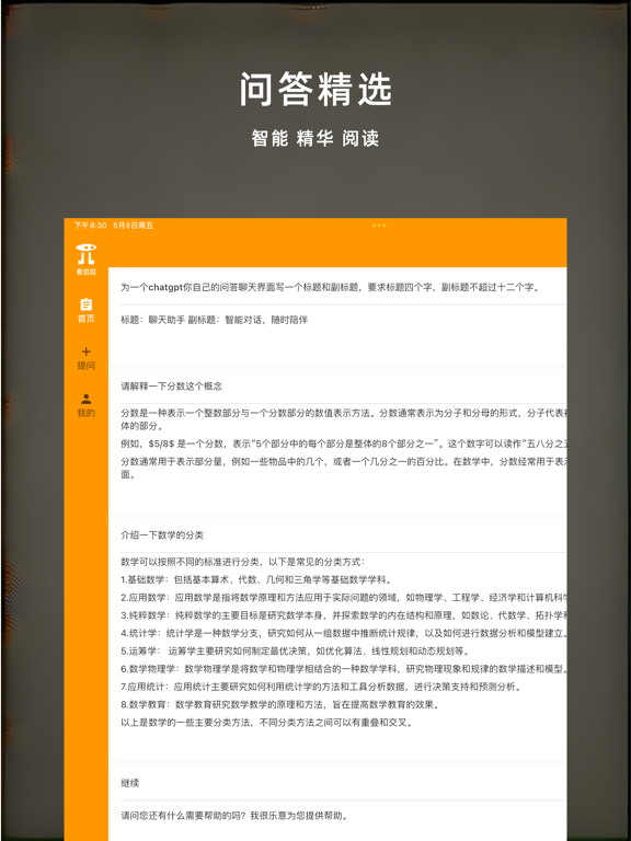 看逛逛是一款专门为人工智能爱好者而设计的知识型分享型智能问答应用程序。在应用内,您可以浏览分享的问答,并分享您自己的好问题。 看逛逛可以帮助用户获取更多的知识,提供各种问题的回答,也可以帮助用户进行工作和办公活动。 同时,看逛逛还可以充当个人助理的角色,为用户提供更好的用户体验。 注意: 看逛逛的服务并不构成医疗建议。人工智能也并不总是全对.它可以是您的重要参考. 更多功能: 1. 自然语言处理:帮助人们理解、生成和翻译自然语言,从而在各种应用中实现更智能的交互和沟通。 2. 智能客服:作为一个虚拟助手或聊天机器人,帮助人们解答常见问题、提供技术支持和处理服务请求。 3. 搜索引擎:帮助搜索引擎更快速有效地通过语义匹配呈现最相关的搜索结果。 4. 文本分析:对大量文本进行分析,识别关键信息、情感、主题等,帮助企业做出更明智的商业决策。 5. 机器翻译:用于翻译不同语言之间的文本,便利跨文化交流与合作。 作为一个聊天虚拟助手,可以提问以下类型的问题 1. 基础知识类:如英语单词、计算公式、历史事件等; 2. 生活常识类:如菜谱、运动健康、旅行攻略等; 3. 娱乐休闲类:如电影推荐、音乐推荐、游戏攻略等; 4. 实用工具类:如单位换算、汇率换算、天气查询、航班查询等; 5. 科技前沿类:如人工智能、机器学习、虚拟现实等; 6. 学术研究类:如文献检索、学术论文排版、研究方法论、综合评价等 一些问题例子 1. 请解释一下"概念"这个概念 2. 你能给我一些关于"你选择的主题"的文章的想法吗? 3. 对"特定行业"的现状及其潜在的小型商业机会进行深入分析 4. 写一个案例研究详细说明"您选择的主题" 5. 为"主题"写一个综合指南 6. 帮助我找出以下代码中的错误:"在下面粘贴代码" 7. 这个正则表达式"正则规则"到底做了什么? 8. 创建一个包含 5 个多项选择题的测验,评估学生对"概念"的理解 9. 以"艺术家"的风格写一首关于"主题"的抒情诗 10. 我想制作音乐视频,但不确定使用什么概念。你能帮我想出一个概念吗? 11. 给我讲一个关于"你选择的话题"的笑话 12. 用"X"和"X"为电影写剧本 13. 你能推荐一些缓解压力的自我保健活动吗 14. 有哪些减少焦虑的正念练习 15. 你能帮我计划两个成年人一周的晚餐吗 16. 什么酒适合搭配烤鸡晚餐 17. 有哪些创造性的方法可以为我的"类型"公司带来潜在客户 18. 生成一份简历摘要,强调我的独特卖点并使我与其他候选人区分开来: "你的简历内容" 19. 请查看我的简历并提出任何改进或修改建议: "你的简历内容" 20. "行业/领域"最重要的 KPI 是什么 21. 请写一份"产品"的SWOT分析 22. 请提供模板来解释标准零售退货政策 23. 为一名游客在"地点"待"时间"天需要多少钱 由于问答的特殊性,需要登陆才可以提问和分享. 注意: 某些功能需要付费使用,你如果没有使用隐私问答功能,你的问答可能会推荐给其他人看到. 付费和会员内容 自动续期订阅 1 VIP会员(一周) 12元 2 VIP会员(一个月) 50元 3 VIP会员(三个月) 150元 4