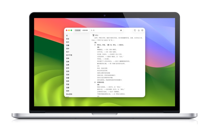 汉语词典是一部为字词提供音韵、释义、例句、用法等等的专业汉语学习工具,它收录了大量的汉字和词汇,并提供了详细的解释和生动例句,满足学生备考、教师备课、写作查词、文化探索等多场景需求,助您精准掌握汉语精髓。 *** 主要功能 *** ► 汉语词典 汉语词典详尽地提供了字词的音韵、笔画、部首、释义、例句以及用法等信息。 ► 成语词典 成语词典专注于成语的释义、出处以及例句的解析,为深入了解中华传统文化中的成语提供了便捷的途径。 ► 联系我们 * 邮件:ceo@7kit.cn 为 macOS Tahoe 26 设计了全新的用户界面。