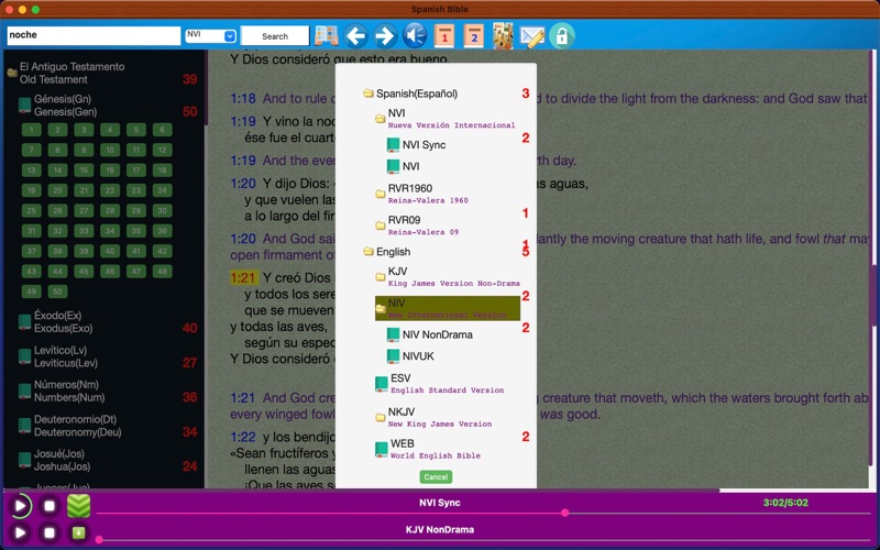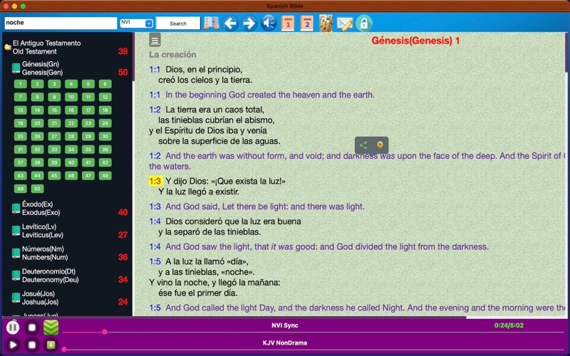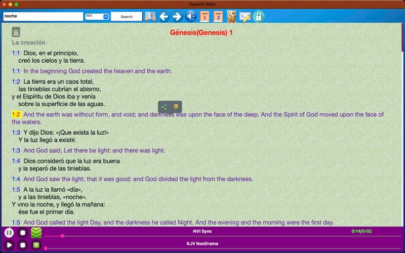 圣经是创造宇宙和人的上帝赐给全人类的信息,分旧约和新约,共有六十六卷。 本软件是西班牙语和英语对照版本。 本软件同时提供英文和西班牙文有声语音圣经。 可以下载圣经语音,在您没有网络的时候也可以收听语音圣经。 iOS版本地址是:https://itunes.apple.com/cn/app/sheng-jing-xi-ban-ya-yu-he/id684594203?mt=8 Fix some bugs in audio play.