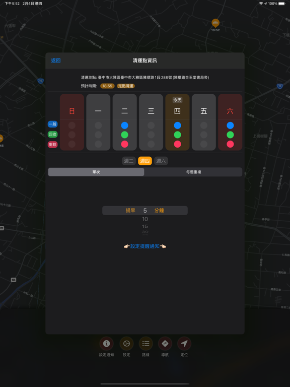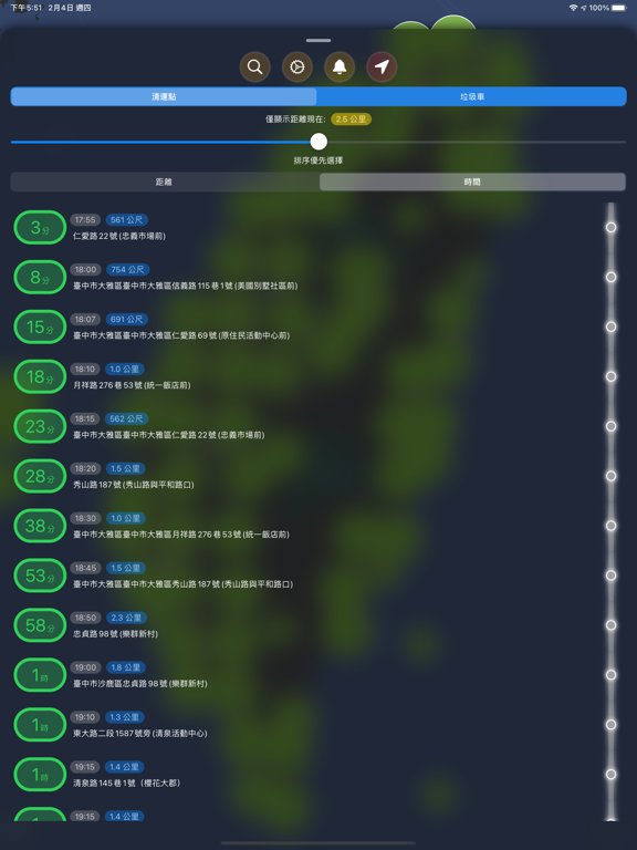 終結追垃圾車的噩夢 - 全台垃圾車即時追蹤 還在為錯過垃圾車而煩惱?還在街頭盲目等待?還在被家人抱怨沒倒垃圾? 這款 App 徹底解決你的垃圾車困擾! 全新2025重大更新 - 追蹤體驗全面進化! 為什麼選擇我們? • 全新垃圾車動態 - 即時 GPS 定位,垃圾車位置一目了然 • 革命性液態玻璃設計 - iOS 26 全新半透明界面,絕美視覺體驗 • 首頁清運卡片 - 快速查看最近清運點,一鍵設定提醒 • 精準到達提醒 - 提前 5-60 分鐘通知,從容準備 • 動態島支援 - iOS 16+ 即時顯示垃圾車距離與狀態 • 智慧預測系統 - 根據即時路況預估到達時間 主要功能 • 全新垃圾車動態 - 即時GPS定位,垃圾車動態一覽無遺 • iOS 26 液態玻璃設計 - 自適應半透明界面,隨環境變化呈現不同質感 • 首頁快捷卡片 - 最近清運點資訊卡,快速導航、設定提醒 • 即時動態追蹤 - 實時顯示垃圾車位置,自動每 60 秒更新 • 動態島整合 - 在動態島查看垃圾車靠近進度與狀態 • 智慧通知系統 - 自訂提醒時間,支援重複提醒不怕忘 • 成就徽章系統 - 29+ 成就解鎖,讓倒垃圾變有趣 • 多城市支援 - 涵蓋全台 20+ 縣市,持續擴充中 Widget 桌面小工具 • 一眼看今日收運時間 • 顏色標示:準時/延誤/完成 • 支援小/中/大三種尺寸 • 垃圾/回收/廚餘分類顯示 強大地圖功能 • 全新追蹤介面 - 即時GPS定位,垃圾車位置實時更新 • Apple 地圖環視整合 - 實景查看清運點 • 路線視覺化 - 清楚顯示垃圾車行駛路線與預計到達時間 • 智慧篩選 - 按距離、時間、類型快速過濾 • 一鍵導航 - 從首頁卡片或地圖直接導航到清運點 進階付費功能 • 移除廣告,享受純淨體驗 • 年訂閱 vs 月訂閱,彈性選擇 • 限時優惠不定期推出 • App Store 安全付款保障 解決你的痛點 問題:「老是錯過垃圾車!」 解答:GPS 即時追蹤 + 智慧提醒,再也不錯過 問題:「不知道要等多久...」 解答:精準預估到達時間,告別無謂等待 問題:「新搬家不知道哪裡丟」 解答:自動定位找最近點,搬家無煩惱 問題:「只想丟回收怎麼辦?」 解答:一鍵篩選回收日,環保更簡單 用戶真實回饋 • 「終於不用再被老婆罵了!」- 5星用戶 • 「動態島功能超酷,朋友都來問」- 5星用戶 • 「搬家必備,快速找到新家附近的點」- 5星用戶 支援縣市(持續增加中) 基隆市、台北市、新北市、桃園市、新竹縣市、苗栗縣、台中市、彰化縣、南投縣、雲林縣、嘉義縣市、台南市、高雄市、屏東縣、台東縣、花蓮縣、宜蘭縣、澎湖縣、金門縣、連江縣 特別感謝各縣市政府提供開放資料 資料授權:https://data.gov.tw/license 立即下載,讓倒垃圾變得簡單又有趣! 告別追垃圾車的日子,從今天開始 喜歡我們的 App?給我們 5 星好評吧! 分享你的使用故事,讓更多人知道這個 App 如何改善生活 推薦給親朋好友,一起讓台灣更乾淨! 支援信箱:hello@garbagetruck.tw 使用條款:https://garbagetruck.tw/terms 隱私政策:https://garbagetruck.tw/privacy 不再錯過清運時間 - 全新強大功能登場! 本次更新重點: 一鍵設定小工具 - 任何清運點都能一鍵加入小工具 - 直接在主畫面查看下次清運時間 - 不用再進入 App 尋找 快速導航功能 - 一鍵導航至任何清運點 - 直接開啟 Apple 地圖 - 隨時可用,不限清運時段 環視街景預覽 - 出發前先預覽清運點街景 - 清楚知道目的地位置 - 支援 Apple Look Around 涵蓋區域 智慧選單操作 - 所有功能都在卡片選單中 - 更快速的操作流程 - 全面優化使用體驗 進階功能體驗 移除廣告享受純淨追蹤體驗! 感謝您讓我們成為台灣最受歡迎的垃圾車追蹤 App! 喜歡這些新功能嗎?請給我們 5 星好評! 支援信箱:hello@garbagetruck.tw 資料授權:https://data.gov.tw/license
