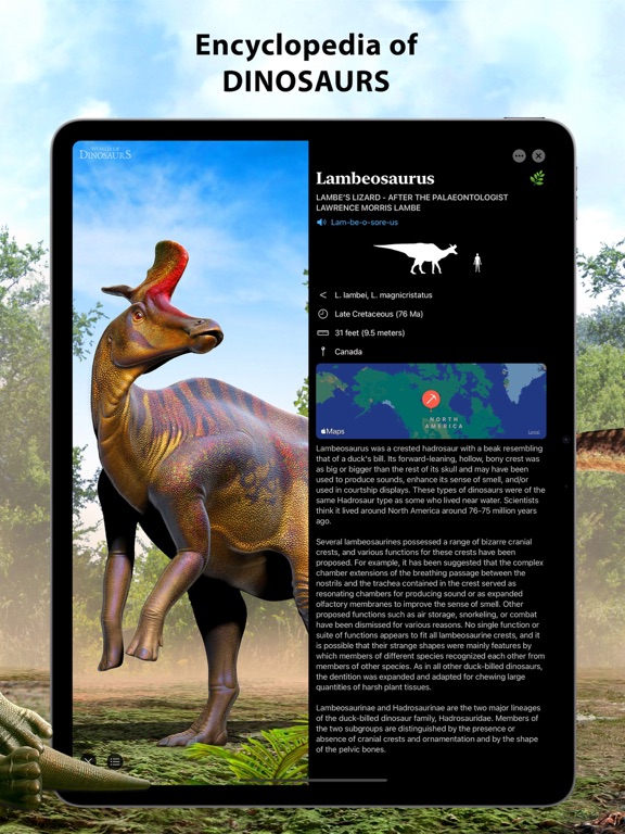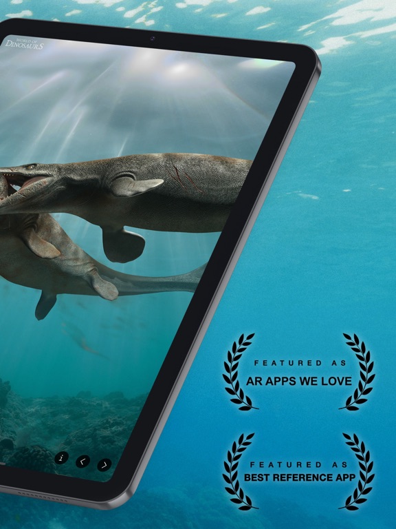 只需轻轻一点,教育应用程序 World of Dinosaurs 就能带您进入史前时代。进入恐龙世界后,从左到右旋转设备,360 度全方位欣赏图文并茂的景观。(提示:当你进入中生代时,使用耳机可以获得身临其境的音效体验)。 恐龙世界》利用我们目前正处于恐龙发现的黄金时代这一事实,以最新的发现和科学理论为基础,在精美的多媒体演示中提供全面的信息。World of Dinosaurs》包括令人惊叹的高清原创插图,这些插图与随书附带的信息共同构成了一个终极恐龙资源库,涵盖了恐龙的历史、发现、灭绝,甚至是今天仍然活着的恐龙祖先。 World of Dinosaurs》是一本信息丰富的互动工具书,下次您在做项目、做演示或只是想满足一下对恐龙的好奇心时,都可以使用它。在目录中,点击 "恐龙 "部分,然后使用放大镜浏览从 A 到 Z 的恐龙物种列表。在 "发现 "选项卡上,您可以查看有关化石形成和恐龙智力的详细信息图表。 该应用程序令人惊叹的 AR 体验也增强了用户的学习体验。从 "AR 恐龙 "选项卡中选择五种恐龙,眨眼间,你就会发现其中一种巨大的生物就在你的办公桌旁。如果你的朋友不相信你的话,拍张照片发给他们吧--那一定会让他们大吃一惊的! 史前套装: 史前套装为您带来恐龙世界的终极体验。访问所有内容和未来更新,包括所有恐龙、翼龙、海洋爬行动物、发现等。史前套装每月更新,添加新的恐龙和更多内容。 The last update of the year takes you deep into the Jurassic seas to discover Thalattoarchon.