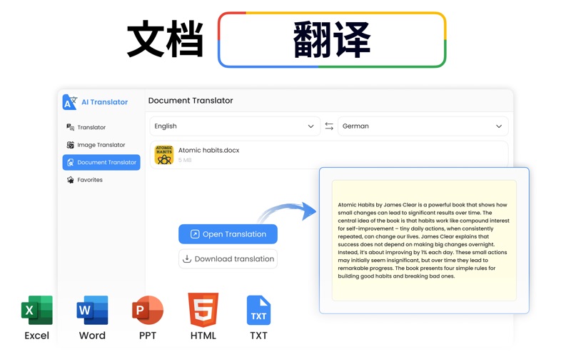 欢迎使用 翻译应用 – 您在 macOS 上的终极翻译助手! 无论您需要将语音转换为文本、将文本翻译成多种语言,还是确保文档得到准确翻译,AI Translator 都是您的完美工具。 主要功能: * AI 智能翻译: 使用先进的 AI 技术,将文本准确翻译成不同语言。 * 语音转文本: 轻松将音频文件转换为精确的文本格式。非常适合记笔记、会议转录或将讲座转换为文字。 * 图片翻译: 即时翻译图片或截图中的文字。非常适合菜单、标志、文件或您遇到的任何视觉文本。 * 文档翻译: 上传并翻译整个文档,同时保留格式和结构,确保专业和准确的结果。 * 多语言支持: 支持多种语言,确保您的沟通在全球范围内保持顺畅。 支持的语言: