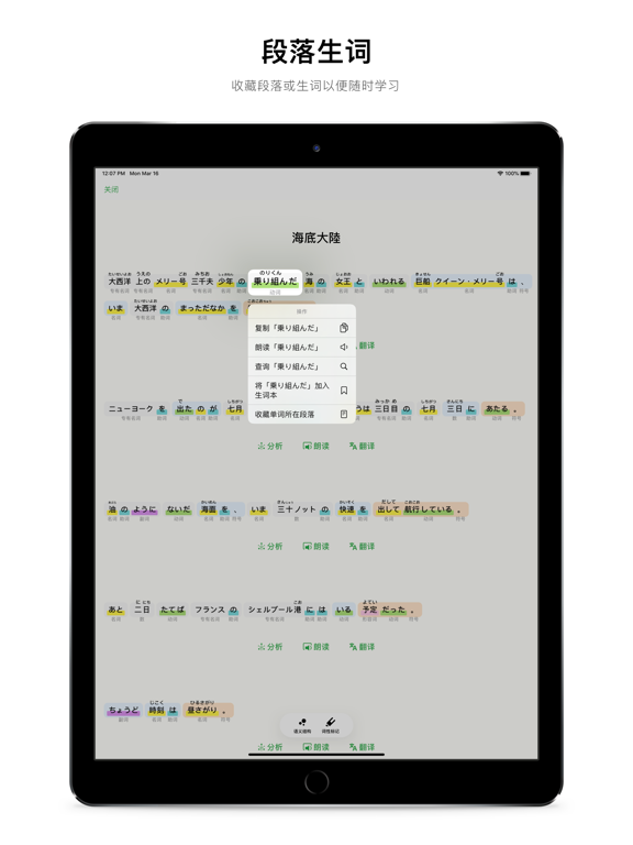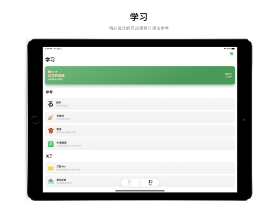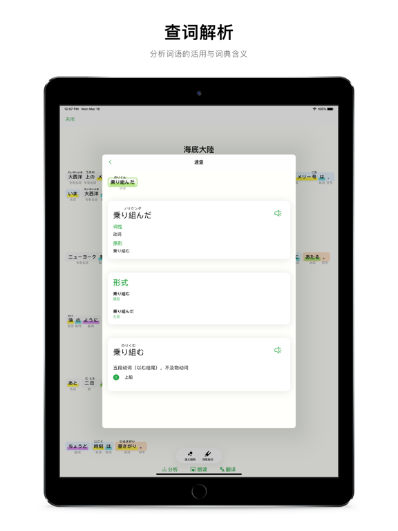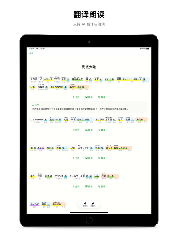 「小众软件」「少数派」「AppSo」推荐的日语语法学习与分析工具。 捧读是一款基于机器学习的日文「语法分析」与「学习」App 阅读器 支持添加 EPUB 电子书,通过阅读自己喜欢的内容学习日语 词性标记 捧读通过机器学习,可以自动断句,标记句子段落中的单词词性,汉字发音,提高你的阅读效率 语义分析 结合机器学习技术,可以准确的分析并生成句子、段落的语义结构,整理短句之间的修饰关系,自动推荐语法学习,帮助你理解日语的语法特性与含义 翻译朗读 捧读还具备了准确的在线 AI 自动翻译功能,并且能够离线朗读句子、段落。 查词解析 捧读可以自动分析单词的活用过程,并内置了海量词库,能够满足查词解析的需要。 段落生词 你可以随时收藏自己喜欢的段落和生词,以便日后可以反复学习 互动课程 精心设计的日语入门互动课程以及常用的语法参考 内容推荐 经典小说,音乐赏析,不定期更新的精选内容 Safari 扩展 通过 Safari 扩展可以轻松解析日语网页内容,方便灵活选择学习内容 更多功能和内容正在有序开发中,如果遇到任何使用问题,欢迎使用以下方式联系我 「App 内的 意见反馈 」 「邮箱」 kevin@miaojiandao.com 「开发者微博」https://weibo.com/kevinzhow 「隐私条款」https://miaojiandao.com/terms/pengdu_privacy.html 「使用条款」https://miaojiandao.com/terms/pengdu_usage.html - 新增 Scheme 支持外部调用