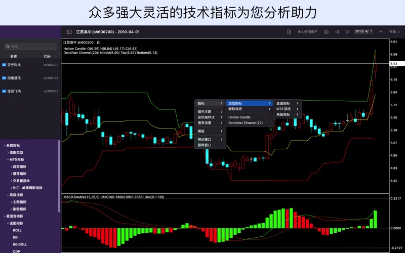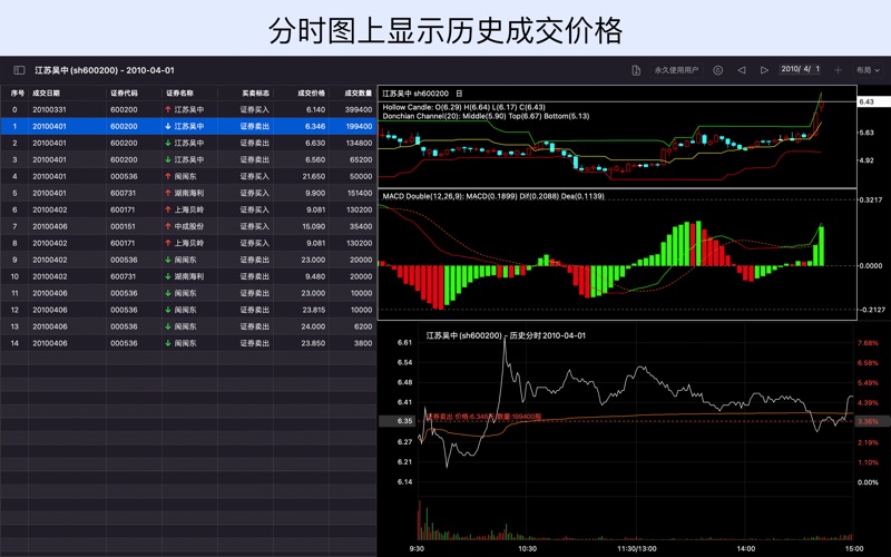 交易复盘是一款面向中国A股交易者的高效可视化复盘软件,您可以导入交割单,快速定位每笔交易的历史快照,通过图表丰富的技术分析指标来精确分析交易质量。 历史总在重演,您可以通过不断复盘历史交易,对自己以往的操作去粗取精,优化自身的交易系统。也可以通过复盘他人分享的交割单,快速学习别人的交易思路。 一图胜千言,多看少动,主观交易者需要不断地识图,在不确定中寻找确定性,总结出高胜率的盈利模式。 本软件只是交易辅助类软件,不提供交易建议,市场有风险,入市需谨慎。 目前只支持中国A股的交割单导入和历史数据查看。 软件特点: 1.操作快捷简便 方向键浏览,上下方向键切换交易记录,左右方向键切换交易日期 2.指标丰富多样 支持MT4/MT5主流交易指标,指标高度定制化 3.支持麦语言的自定义指标 如果您熟悉麦语言的自定义指标的开发,可以使用麦语言定制您自己的指标。 4.界面布局灵活 支持横向纵向的灵活布局,满足您日常浏览的偏好 5.支持自制交割单 您可以通过交割单模版来定义交割单,例如您可以把某些大神分享的持仓记录的帖子整理制作成交割单,导入到App中进行快速浏览。 操作小窍门: 1.善用排序功能 您可以通过日期排序按照时间顺序逐天进行复盘,也可以通过证券名称排序以品种的顺序进行复盘 2.快捷操作 App提供了方向键快捷操作,上下按键 -> 切换品种,左/右按键 -> 日期后退/前进。 3.交割单导入 可以直接使用从券商下载的交割单导入,也可以把数据复制到交割单模版文件后导入,为了避免出现数据错误,尽量把Excel表格中的数值型转换成文本格式。 如果券商下载的交割单不能导入的,请把你下载的交割单文件通过下面的邮件发送给我们。 【联系方式】 您有任何问题与建议,可通过如下方式联系我 Email: jingjingapp@hotmail.com QQ群:799377130 隐私策略 http://jingjingapp.com/privacypolicy.html 服务条款 http://jingjingapp.com/termsofuse.html 交割单大礼包增加三个游资大佬的交易记录。