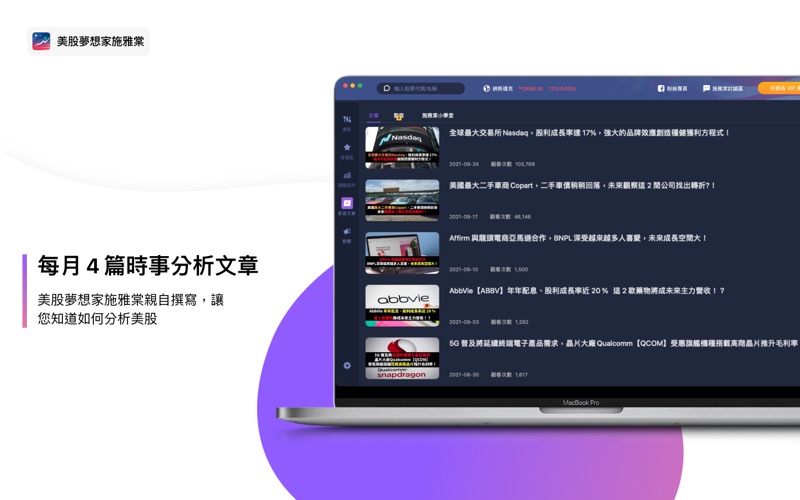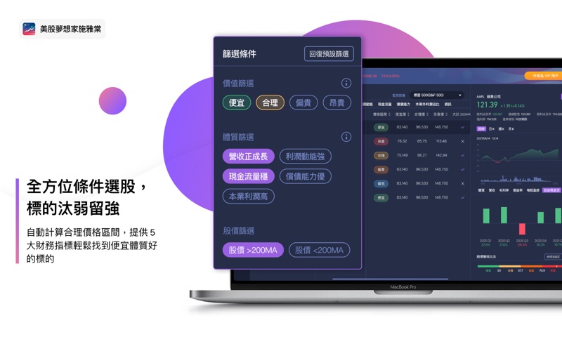 美股夢想家 帶你征服美股 領股息又賺價差 打造穩定現金流 「投資美股比你想得更簡單,只要持之以恆,用耐心累積資產,就能邁向財務自由!」— 美股夢想家 施雅棠。 美股夢想家幫您解決下列困擾: 1. 不知何時入場 ? 【價格區間】三大價格評估法,直接幫你抓出美股便宜合理價,找到績優或高速成長公司最佳進場時機 【200MA生命線】直接篩選出200MA以上的股票,判斷股價是否站穩 2. 害怕選到爛公司? 【體質評估】從營收成長、利潤動能、現金流量、償債能力、本業利潤五大面向,公司體質一目瞭然,找出安全成長績優股 3. 沒時間研究財報或對美股不熟,又想投資? 【專屬影音】美股夢想家耗時2個月錄製52集影音,循序漸進幫你打底美股投資基本功 【時事文章】不定期時事文章分享,讓您跟著夢想家分析的思緒,建立強健的投資頭腦 【關於美股夢想家-施雅棠】 【個人經歷】 2019 年新書榮登博客來排行第 1 名 臉書粉絲團「美股夢想家」版主(5 年內累計超過 3 萬粉絲量) 【著作】 30 歲警官靠美股提早退休 【簡介】 施雅棠,錢進美股9年滾出千萬資產,透過投資績優成長股,打造出每年投資收入破百萬的佳績!並善用美股特性創造出每月領股利的穩定現金流。施雅棠也樂於分享自身經驗,在2015年創立臉書粉絲團「美股夢想家」,迄今累計三萬多粉絲,幫助許多粉絲錢進美股,邁向財務自由人生,並於2019年將投資經驗濃縮在「30歲警官靠美股提早退休」這本書中,榮登暢銷排行榜第1名! 歡迎加入粉絲團了解更多美股夢想家資訊 https://cmy.tw/009HBF 美股夢想家-投資小學堂 https://cmy.tw/008SJA 服務條款:https://www.cmoney.tw/member/tos.aspx 隱私權政策:https://www.cmoney.tw/member/privacy.aspx 著作權政策:https://www.cmoney.tw/member/cr.aspx - 改善效能