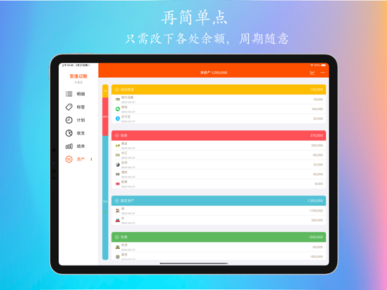 ~~~~~~主要功能~~~~~~ * 两种记账方式,精简由您: 方式一:记录每笔收支,精准统计。 · 每笔录入最少两步:录入金额和备注后回车,本地的机器学习自动设定其他。 · 常用账目可以设置模板,直接选择即可。 方式二:资产中只记录各账户余额,每隔一段时间更新下,周期随意。轻松掌握每次更新时的资产增减。 * 丰富的报表 饼状图和条形图:直观查看各类收支和各成员的占比。 柱状图:一年的收支,各种对比,看增减:知趋势。 折线图:轻松掌握资产增减和各项资产、负债占比。 * 数据安全私密,完全自己掌控:本机记录一份,自己的iCloud记录一份,无第三方,数据自由导出,可以设置密码。 * 数据自由:无需会员,数据完全自由导出。 · 支持导出通用格式CSV格式,Mac版还可导出Excel的XLSX格式。 · Mac版可一次批量清除所有记录。来去自由。 * iMac版和iOS版通过iCloud自动同步 * iOS 新版客户端 无缝使用老版本的易记账 Mobile 数据,数据通过iCloud 自动保持一致。 * 标签功能简单搞定:差旅报账,人情往来,旅游花销,装修统计,借钱还款,旅行社记录旅行团,发卡商户管理办卡用户等…更过功能待您探索。 * 搜索:关键词搜索备注、分类、成员和金额,更可设定各种搜索条件进行过滤搜索结果。还可通过搜索来统计收支结余。 * 计划列表:按月列出计划的收支项以及总金额,到期消息提醒,自动记账。未来尽在掌握! * 愿望:许下一个愿望,一步一步的实现它! ~~~AB两种计费方式任选~~~ A,会员VIP订阅 会员VIP连续包年:订购后使用所有功能,按年付费。包含不断升级的全部新功能。 · 订阅周期一年 · 订阅价格:35元/年 · 新用户可以免费使用一周。 · 推荐购买此项,最优惠。 会员VIP连续包月:订购后使用所有功能,按月付费。包含不断升级的全部新功能。 · 订阅周期一个月 · 订阅价格:7元/月 * 付款:提示购买后,用户选择确定购买,验证用户账户信息提示购买成功后计入用户账号。 * 取消订阅:请在订阅到期前24小时以前,手动在iTunes/Apple ID设置管理中关闭自动续订。 * 会在到期前24小时内扣款,扣款成功后订阅周期顺延一年/月 B,单功能计费:购买付费功能后,此功能永久使用。软件不断升级的过程中,可能会不断增加新的收费功能。 * iOS和Mac端为统一付费,一处付费,两边都可以使用,提示购买时直接选恢复购买即可。 ~~~~~~~~~~~~~~~ 隐私政策:https://funbean.top/?docs=zh-2 服务协议:https://funbean.top/?docs=zh 客户服务: QQ 313503033 Email cs@funbean.top 支持iOS 26 。