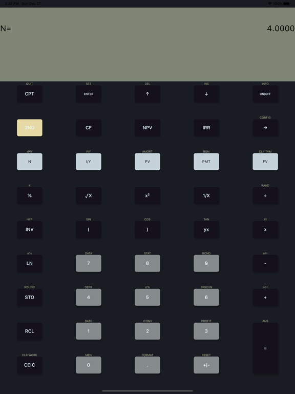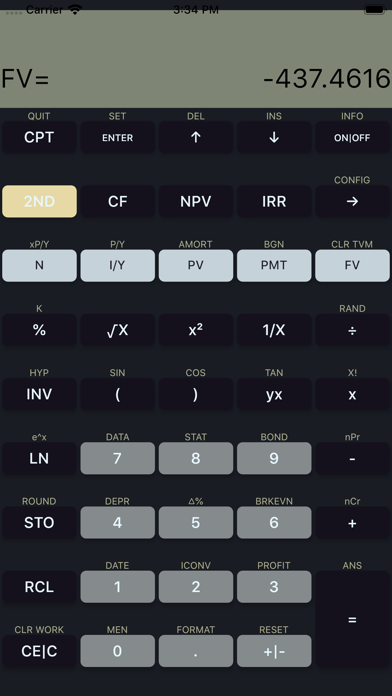 RBA计算器是基于BA Ⅱ PLUS金融计算器的移动应用软件。其使用方法与物理计算器一致。 全功能模拟德州仪器BA II Plus专业财务计算器,适用于iPhone、iPad和macos。它采用与原版相同的算法和公式构建,提供完全相同的功能和操作顺序,并提供更好的用户体验,相比其他金融计算器及惠普12c的RPN输入更简单方便。 •货币时间价值计算。 •现金流分析、净现值(NPV)和内部收益率(IRR)、净未来价值(NFV)、投资回收率(PB)、折现回收率(DPB)、再投资率(RI)和修改后的内部收益率(MOD)。 •贷款计算。 •盈亏平衡、利润和百分比差异计算。 •债券价格和收益率“到期”或“待赎回”计算,以及修改的期限(DUR)。 •统计分析。 •10个存储存储器。 •链和代数操作系统方法的选择。 •科学能力,包括对数、正弦、余弦等。 •打开/关闭按键点击反馈声音的选项,以及 •通过应用内设置轻松设置数字格式、角度模式、日期格式等。 •在应用程序关闭/启动期间自动保存/恢复所有格式设置。 •解决时间价值(TVM)计算 •生成摊销计划 •使用四种不同的方法计算折旧 •11份工作表,包括债券、盈亏平衡分析、现金流分析、日期、百分比、折旧、利息转换、内存、成本销售利润和统计数据 •全套科学计算,包括日志和三角函数 •链或代数计算 •更多。。。 ****联系方式**** 邮箱:gushedaoren@aliyun.com qq交流群:762777831 修复了一些bug