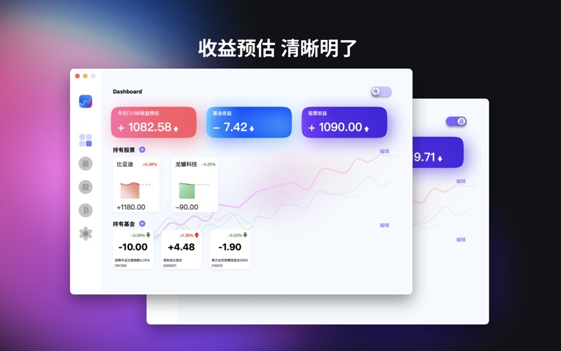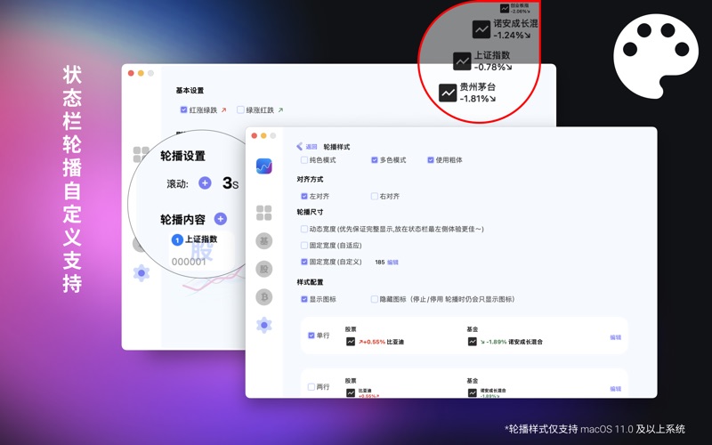 Vocan-韭菜盒子 是一款状态栏可快速查看基金股票走势和信息的工具 随时随地瞄一眼自己的基金股票coin,顺便看看盈亏估值 可在状态栏滚动播报股票基金信息 可以设置持有的基金份额信息,预估收益等 快捷方便 点开状态栏即可查看丰富信息~ 港美英股Bate中~ 有问题可及时联系 marcusias@163.com 建议和反馈: https://havefun.net.cn/vocanAdvice/ 1.涨跌显示新增视障模式、自定义模式 可在 设置-通用-基本设置 修改设置。(需 macOS 11.0 及以上) 2.解决修复已知问题 如有问题或者意见,欢迎邮件及时联系开发者~