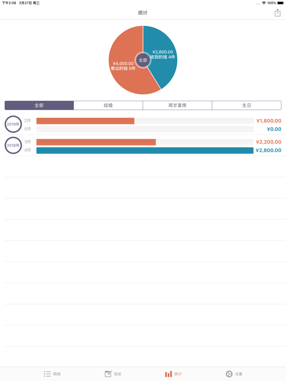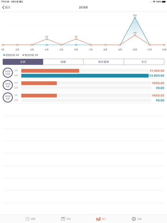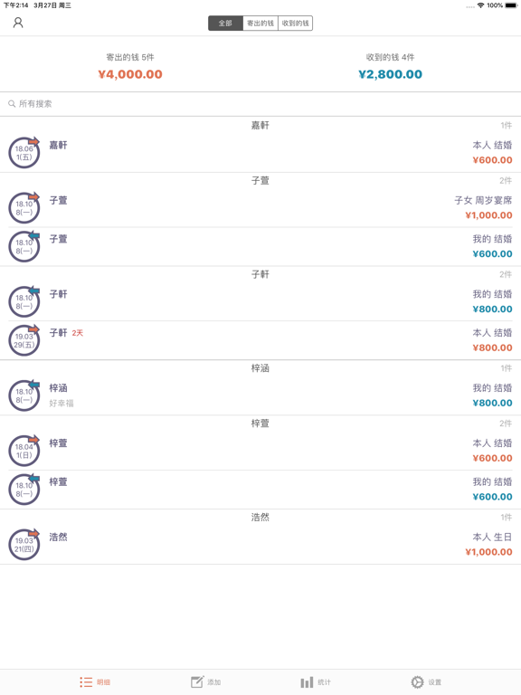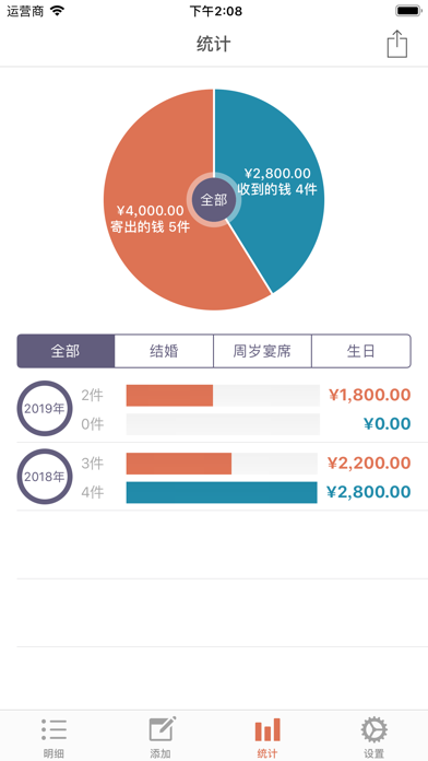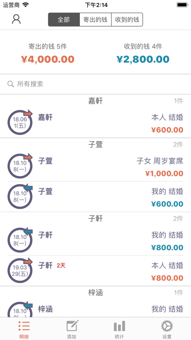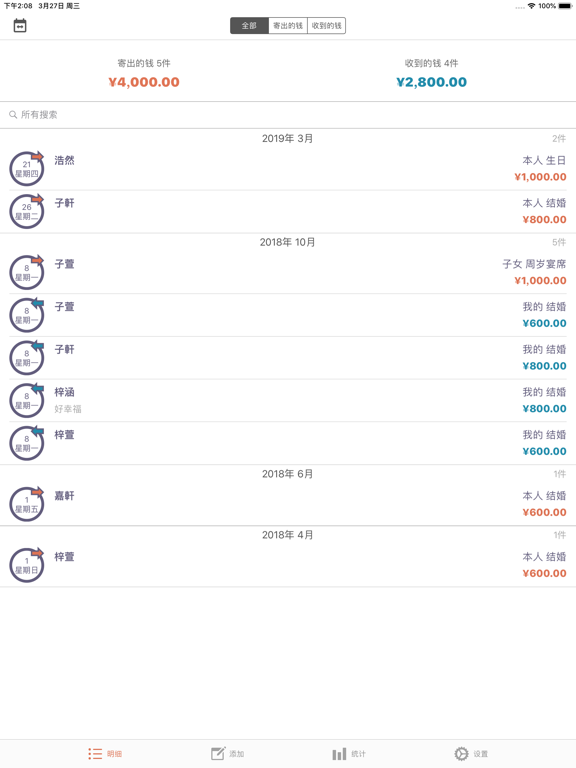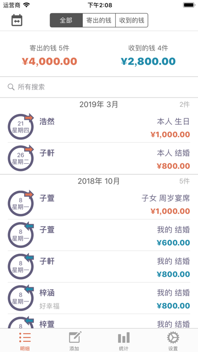这是可管理礼金,丧礼金等各种红白喜事的APP。 请简单来管理结婚,生日,葬礼,慰劳,开业等往来吧。 [主要功能] - 寄出的钱,收到的钱的储存,修改,查询,删除功能 - 各明细别记录功能 - 姓名,关系,种类,每月搜索功能 - 寄出的钱,收到的钱的全部件数和合计金额表示 - 按日期顺序,姓名顺序,种类顺序,金额顺序排列明细 - 每年,每月统计图表显示 - 通讯录联动功能 - 通过设置密码保护明细 *** 如一次购买、将免费使用日后更新。 *** [PRO功能] - iCloud实时备份 : 将自动保存在cloud系统、安全管理明细。 : 即更变机器、也能随时恢复。 - 提醒事项 : 请使用提醒事项确认好到来的红白喜事。 : 通过与iPhone提醒事项App联动通知给您。 - 类别管理 : 关系、种类、金额类别可由用户直接编辑管理。 - 隐私密码 : 保护您的隐私。 - 深色模式 : 用深色模式减少眼部疲劳。 - 传输数据 : 可发送至邮件、信息、隔空投送、备忘录、Dropbox、谷歌驱动器等。 - 传回数据 : 叫来Excel文件的内容。 - BUG FIXED