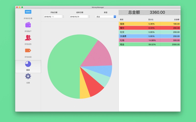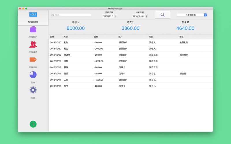 记账软件 MoneyManager 将帮助您掌控您的所有资金,知道自己的钱花费在了哪里。并能够清晰地呈现出您当前的财务状况,预测您未来的财务走向。 易于使用,没有复杂的操作。 去繁就简,直观的设计,MoneyManager让记账更简单。 【账户管理】 - 自定义不限数量的账户(收入、支出、储蓄、信用卡等) - 自动计算账户的总收入、总支出、可用余额 【收款人管理】 - 自定义不限数量的收款人 - 自动计算收款人的总收入、总支出、可用余额 【类别管理】 - 自定义不限数量的收入类别 & 支出类别 - 自动计算类别的总收入、总支出 【快捷搜索】 - 可以按账户、类别、收款人和说明等搜索交易 - 您也可以选择查看两个日期范围内的所有交易、支出的交易、收入的交易 【统计报告】 - 直观的图表统计 - 您也可以选择任意两个日期范围内的交易来进行统计分析 【iCloud同步与备份】 - 保护数据的安全性 - 其他设备可以通过iCloud访问与共享数据 【导出CSV数据】 - 选择两个日期(开始日期-结束日期)导出CSV数据 【密码保护】 - 保护您的数据,不被他人偷窥 - 您还可以设定密码提示 使用 MoneyManager 记录个人开支! • 您在附近咖啡店的消费如何? • 您外出就餐时开销过大吗? • 上个月您花了多少钱买衣服? • 更多的开支... 如果您喜欢使用MoneyManager,请评价该应用!如果您想要任何功能,请告诉我们。如果您想给我们送巧克力和玫瑰,当然也可以捐赠给我们。 现在就使用MoneyManager记录吧。 在统计页面,我们提供了年份选择列表; 选择不同年份后,自动统计每个月的收入与支出总金额。 感谢大家的反馈。 感谢大家的小费支持。