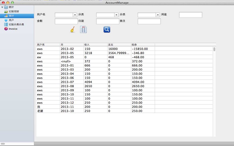 记录每天的收入和开支情况 统计每个人每月的收入 支出 和结余 some bug fixed