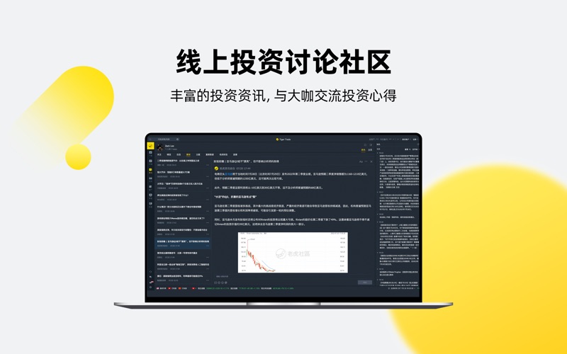 老虎国际,美国纳斯达克上市公司,股票代码TIGR。 2015年8月老虎国际推出自主研发的交易平台 2018年8月 入选全CB Insights2018年全球独角兽企业榜单 2019年1月 入选毕马威 2018中国领先金融科技企业50 2020年1月 入选2020胡润新金融50强 2020年1月 荣获《财经》新媒体2019年最佳金融科技创新奖 ——老虎国际, 更专业的服务—— 【全球市场】一个账户玩转美港股市场行情,无需切换 【实时行情】多个市场实时行情一手掌控 【服务平台】全面支持手机移动端、电脑客户端、Pad端等终端适配 【老虎社区】实时财经资讯,与大咖讨论实盘观点,丰富课程适合各类投资者进阶 【热点资讯】热点及时推送,线上投资讨论社区,与投资大咖交流经验心得 【专业客服】中英文客服全面覆盖 ——联系我们—— 电话:400-603-7555 *市场有风险,投资需谨慎 【优化】优化图表区域模块展示层级,缩减部分内容,简化页面 【优化】指标添加管理功能交互优化,支持常用指标收藏 【优化】一目均衡图指标支持未来云图显示