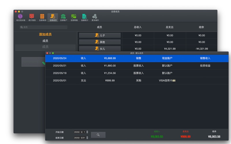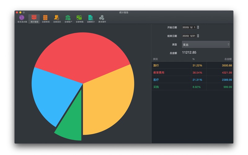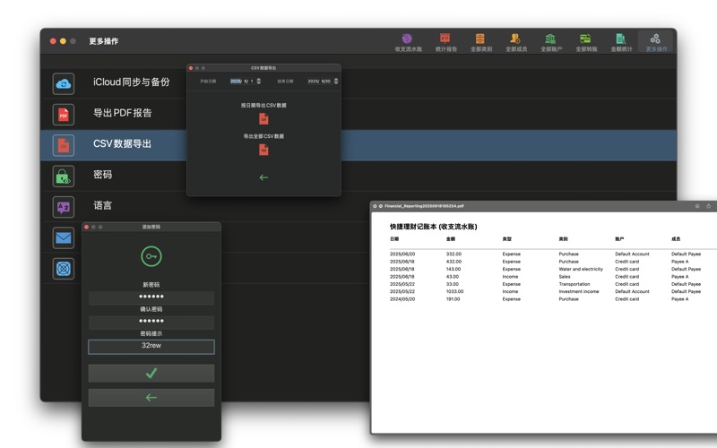 使用收支记账本App跟踪您的消费习惯。 它可以帮助控制您的资金流动。 这是平衡开支和收入的最简单方法。 它允许您创建自己的类别,甚至允许创建多个账户和多个成员。 您还可以自定义合适的付款方式,成员,类别,日期,费用明细等。 它提供了强大的功能,如下: + iCloud同步与备份,您可以在其他macOS设备共享数据。 + 账户转账。 + 账户转账之后,将会自动添加交易条目。 + 提供日期过滤交易历史的选项(本月份、本年份、本周、今日、所有日期);可以快速查看所有记录。 + 查看账户与收款人关联的所有交易记录,并且可以选择日期统计总收入、总支出、总余额。 + 添加费用金额,日期,类别,付款方式,成员,说明。 + 按类别或付款查看您的费用。 + 根据您的需求定制。 + 自定义收入类别,费用类别。 + 自定义账户。 + 自定义成员。 + 随时编辑历史交易历史记录。 + 直观的图表。 + 非常简单直观的界面。 + 搜索和高级搜索选项。 + 导出PDF报告数据(可以导出全部数据、也可以选择两个日期范围内的数据导出)。 + 导出CSV数据(可以导出全部数据、也可以选择两个日期范围内的数据导出),可以使用 Numbers 或者 Microsoft Excel 打开查看与编辑。 + 密码保护记账数据。 + 可以切换不同的语言使用。 + 统计并直观展示:每天、每月、每年、所有日期的总收入、总支出、总余额。 管理日常开支需要花费大量的时间和精力。 使用收支记账本App可以轻松减少您的工作量。 Bugfixs