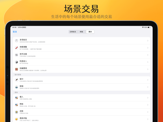 貔貅是为认同长期主义的你准备的。貔貅的底层是财务会计的逻辑。在财务里有两条主线:收支和资产负债,以及连接这两者的“现金流”。 对于大部分人都会经历记账的三个阶段:收支记账、资产负债记账、生活方式。 刚开始在校求学、留学海外或初入社会,在这个阶段没有太多的资产与负债,更多需要关注收支情况。这个阶段也是最好的让我们养成良好的消费习惯的好机会,在这个时候,可以借助貔貅中详细的收支项目和收支预算,对自己的的消费进行梳理和控制。 当我们工作一段时间后,随着收入的提高,在第一阶段养成的良好的消费习惯,我们开始积累更多的资产,同时有可能开始买房买车,需要记录和管理相关的债权债务,那么这时候就可以用貔貅里更丰富的账户类型和交易,进行管理。 随着貔貅越用越久,各种投资、保险等等也会伴随我们的人生前进开始发生,那么貔貅的全貌也会开始呈现出来。 【如何开始使用貔貅】 1、创建一个账本。由于账本之间数据完全独立,没有任何关系。貔貅里除非是公司账目和个人账目,一般不分账本。在日常生活中我们会有很多的场景,比如结婚、装修、旅游等等,在其他应用里会用分账本的方式来处理,而貔貅里只需要建立相应标签。 2、建立所有的账户。包括自己手上有的现金、各种银行卡、信用卡、微信零钱、支付宝余额、加油卡、国网电力卡以及各种已有债权债务等等。账户建立后,用余额调整交易,把当前的账户余额全部调整正确。 3、调整收支项目。在创建账本时,默认会创建详细的收支项目,同时可以根据自己的需要在设置,收支项目中进行新增修改删除。 4、开始正常的记录了。 【多币种支持】 貔貅里支持多币种,与其他一些应用不同,貔貅的币种是跟随账户的,也就是在创建账户的时候可以选择币种,而记录消费时,选择对应的账户,就是按该账户计费。如果出现跨币种账户转账,在貔貅里就是用货币兑换就可以。 【账户】 貔貅里可以创建不限数量的账户。在貔貅里一共有26种资产和负债的账户类型,基本上覆盖了我们日常生活中会见到的大部分。其中属于负债的有3种:信用卡、预收款、借款。属于资产的有23种:现金、银行卡、网络账户、定期存款、借出款项、预付款、垫付款、待摊收支、社保、人身保险、财产保险、投资分红险、公益保险、上市证券、开放式基金、货币基金、理财产品、债券、贵金属、数字货币、期货、贵重资产、物品。 信用卡:有额度可以透支的银行卡,还有花呗、京东白条等等都属于信用卡类型。 预收款:预收对方的钱,后续用于抵扣相应的消费。 借款:顾名思义就是跟别人借的钱,还有像银行的贷款都属于借款。 现金:放在钱包里的钱,虽然现在很少用现金,但是 银行卡:不能透支的银行卡。 网络账户:微信零钱、支付宝余额以及一些仅需要记录流水的网络账户都可以使用这个类型。 定期存款:诸如整存整取三年期之类的存单,还有一些大额存单都可以用这个来管理。 借出款项:借钱给别人,对自己来说是个债权。会自动创建虚拟的债权账户。 预付款:预付给别人的钱,一般用在低频消费的商家,比如健身房、游泳馆、理发店等等。 垫付款:出差帮公司垫付的款项,在后续使用报销进行相应的抵扣。配合前面的预收款,还可以进行冲抵。 待摊收支:比如物业费、车险等一次性缴纳,但需要分摊到每个月去的,就可以用这个来记录。 社保:医保、养老保险、公积金及企业年金。 人身保险:商业保险的一种,比如寿险、意外险。 财产保险:商业保险的一种,比如财产险、家财险。 投资分红险:商业保险的一种,提供商业保障和分红的保险。 公益保险:不求回报的一种保险。 上市证券:A股、港股、美股等证券资产账户,可以记录持仓和动态获取市值,并且记录资金情况。 开放式基金:可以管理投资的基金份额和持仓,目前市面上的大部分基金使用这个来管理。 货币基金:类似余额宝一类的无风险投资品。 理财产品:银行提供的固定收益无风险的投资品。 债券:有价债券,比如一些国债等。 贵金属:黄金和其他一类的贵金属投资。 数字货币:加密数字货币资产,比如比特币等等。 期货:期货合约的管理账户。 贵重资产:房产、车子、铺面等等。 物品:珠宝、艺术品、字画等等。 【交易】 在貔貅里除了日常收支交易,根据不同的场景会有对应的交易记录方式。 日常收支:顾名思义就是我们日常最高频用到的交易类型,可以记录收支项目、金额及收支账户。 转账:账本内所有账户资金的资金转移,都适用转账交易记录。如果是不同币种之间转账,用货币兑换交易类型。 多项收支:用于记录多个收支项目或者多个账户的交易,比如超市购物清单等等。 余额调整:账户的余额调整交易,这是一个强大的交易类型,会根据历史情况,自动调整,保持账户余额的准确。 货币兑换:如果账本里有多个币种的账户,可以用货币兑换来记录,比如美元换人民币,中间因为汇率两个账户的流入流出金额不同。 利息收入:一种快速记录账户利息的交易。 信用卡取现:记录信用卡取现到银行卡的交易。 信用卡还款:记录信用类账户的还款交易,可以设置优惠抵扣。 购汇还款:不同币种的信用卡进行还款时可使用。 信用卡账单分期:对于已经出账的账单进行分期,会自动生成首期交易和后续的计划任务。 信用分期购物:比