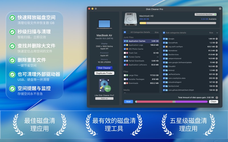 Disk Cleaner为您完成所有工作!我们优化了最有效的位置,以快速扫描并删除占用宝贵磁盘空间的所有垃圾。停止浪费磁盘空间 ■ 从已卸载的应用程序中删除不需要的文件 ■ 临时互联网文件, ■ 旧邮件附件,和 ■ 你不了解的其他人。 ≈ 特征:≈ 使用“PRO Disk Cleaner”清洁: ◉ 应用程序日志文件 ◉ 浏览器数据 ◉ 应用程序缓存 ◉ 下载文件夹 ◉ 邮件下载文件夹 ◉ 垃圾桶 ◉ 旧的iPhone / iPad备份 ◉ IOSPhoto Cache ◉ 大文件(用户文件夹中的文件大于100 MB) ◉ 卸载应用程序(必须手动删除.app文件) 阈值空间限制通知程序: ◎ 一旦磁盘空间低于设置的阈值限制,电子邮件将被触发到已配置的电子邮件地址。 ◎ 用户管理的订阅。 ◎ 在有效订阅期内不允许取消当前订阅。 ◎ 订阅期限为 30 天,必须手动续订。 - 使用条款https://appyogi.com/legal/terms/ 如有任何问题,建议或错误,请发送电子邮件至support@appyogi.com。我们希望听到您的想法,建议并对此应用的未来版本进行改进,以保证您的满意度。我们计划通过您的爱和支持进行主动更新!每一点都有帮助! :) ■■■谢谢你使用PRO磁盘清理器应用程序■■■ 我们修复了错误,并进行了改进,以提高您对应用程序的体验。 如果你喜欢磁盘清理器,请在AppStore上给我们评分! 我们将永远感谢你