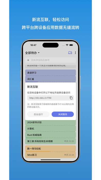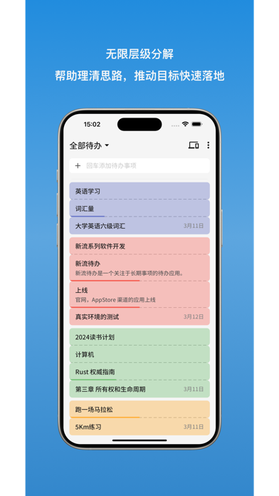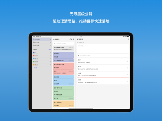 重要特性: 1. 无限层级分解,直观进度展示。无时间的宽松化设定,拒绝焦虑和挫折 2. 原创NovaFlow™架构,通过端对端加密通道,实现应用在手机、电脑、平板间的无缝流转。 3. 自部署,自托管支持。支持部署到任意设备,甚至是一台旧手机上。 订阅用户权益 1. 订阅用户可以完全解锁跨平台能力 自动续费会员说明: 1. 订阅周期:1个月(连续包月会员),3个月(连续包季会员),12个月(连续包年会员) 2. 订阅价格:连续包月产品为每月3元,连续包季产品为每季度 6元,连续包年产品为每年18元 3. 付款:用户确认购买并付款后记入iTunes 账户 4. 续订:苹果iTunes 账户会在到期前 24小时内扣费,扣费成功后订阅周期顺延一个订阅周期 5. 取消续订:如需取消续订,请在当前订阅周期到期前24小时以前,手动在iTunes/Apple ID设置管理中关闭自动续订功能 6. 隐私政策:https://www.xinflow.cn/privacy.html 7. 用户协议:https://www.xinflow.cn/user_protocol.html 8. 自动续费会员服务协议:https://www.xinflow.cn/autorenew_agreement.html 1. 添加Emoji图标支持 2. 若干bug修复