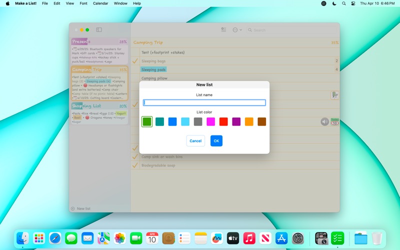 通过 iOS 版“制作清单!”(免费应用),快速轻松地创建无限列表,所有列表均与您的 iOS 设备(包括 Apple Watch)同步。 主要特征: • 通知 • 音频笔记附件 • 图片附件 • 突出显示的文字 • 标记的项目 • 打印列表 • 注释 • 截止日期 数据同步需要启用iCloud驱动器。 有关反馈或建议,请写信至 info@makealist.net 在打印选项中添加数字
