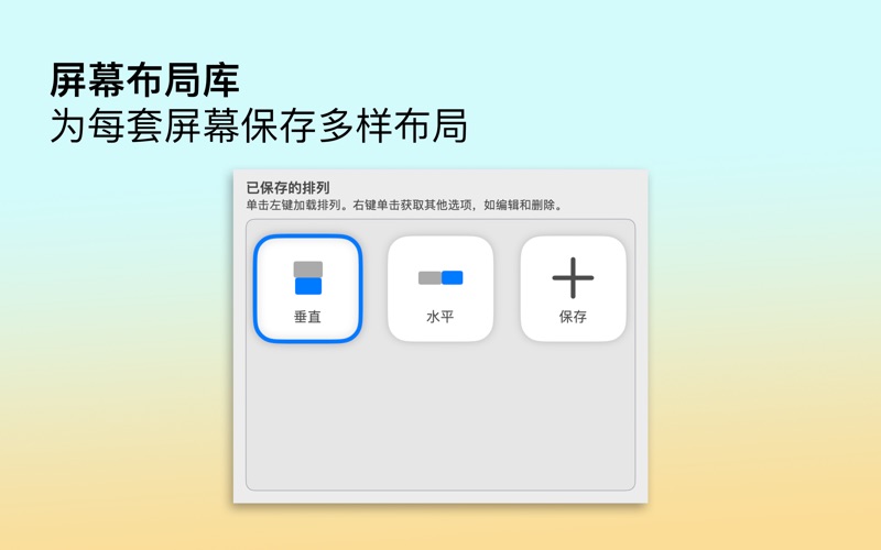 厌倦了每次移动显示器时都需要调整设置吗?也许你喜欢将笔记本电脑放在支架上并放在桌子上?这款应用就是为你而设计的! 屏幕整理大师可以方便快捷地访问必要的显示排列设置。例如,你可以调整哪个显示器在顶部,或者哪个是主显示器。 你的排列与你创建它们的显示器绑定在一起,这意味着你可以在多个屏幕设置上使用屏幕整理大师。对于那些带着笔记本电脑上下班、在工作室工作或者有多个办公桌的人来说,这非常方便。 如果你有多个屏幕、多个工作场所,或者喜欢节省时间,那么屏幕整理大师就是为你而设计的!立即! 修正了英文中的模糊措辞。