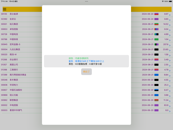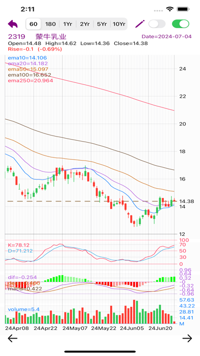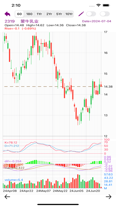 黃金交叉是股票技術分析中的一個重要工具。它提供長達十年的陰陽蠋日線圖,並輔助使用多種技術指標,例如SMA、EMA、WMA移動平均線、SAR拋物線指標、DMI趨向指標、KDJ隨機指標、MACD、RSI、MTM、OBV、PSY、ROC等,以及成交量。此外,黃金交叉還提供多種圖表解讀工具,例如阻力位、支持位、上升趨勢線、下降趨勢線和水平線。系統會自動分析您選取的股票,如果該股票碰到重要利好指標,例如早晨之星、均線多頭排列、KD線黃金交叉、+DI-DI黃金交叉、MACD升穿零軸並快慢線金交、股價從SAR之下轉為SAR之上、WMA十天線升穿二十天線等,將所有利好股票放入黃金交叉列表,供您進一步分析。 bug fix - unable to delete sub-chart indicator