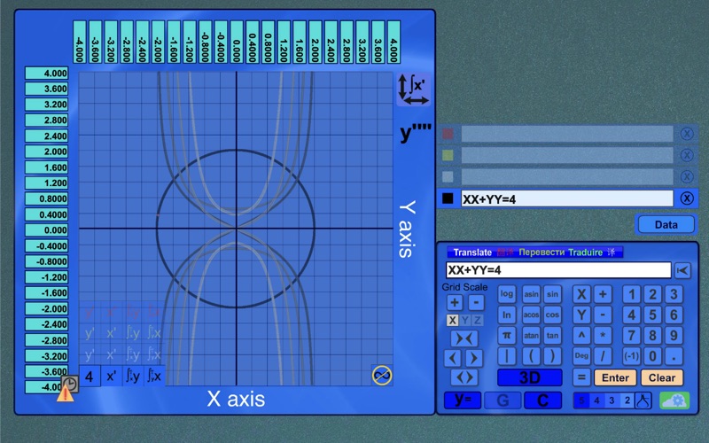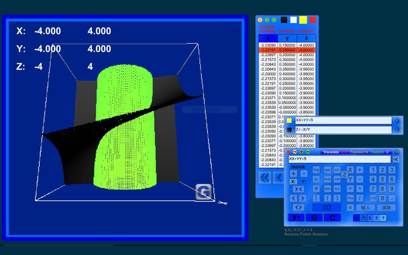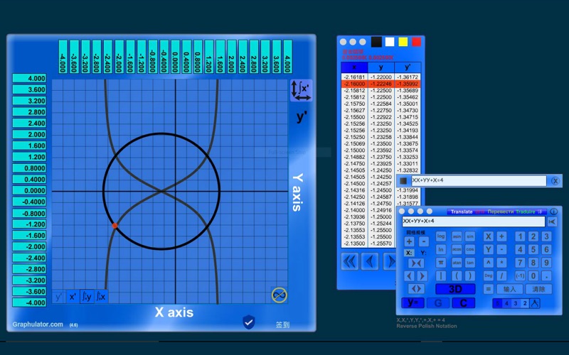Graphulator是一款可以进行二变量或三变量方程运算的数字图形计算器。能够同时绘制函数和非函数。包括数据输出!现在还包括了数值计算。 科学计算器 三角函数 对数 绝对值 科学记数法 基本计算器 函数计算器 二变量计算器 三变量计算器 数值分析 拖动网格或使用控制器来移动或更改比例尺。 拖动三变量网格来旋转。 Graphulator有可能无法辨识非函数1/50网格比例尺。用户可以调整准确度或更改网格比例尺,包括分别调整宽度和高度。 Graphulator是能够对非函数进行运算的唯一一款计算器(方程式无法分解为函数)。值得注意的是,这些导数与标准计算完全不同。 Graphulator是能够绘制三变量非函数的唯一一款数字计算器(方程式 f(xyz) = f(xyz))。 如果您对此有任何的质疑,请联系我们 (contact@Graphulator.com) Graphulator 将放弃四阶导数