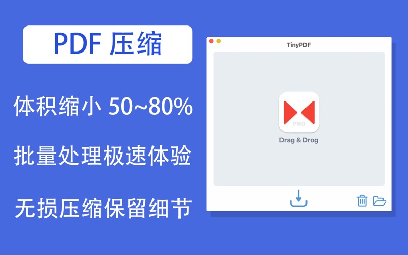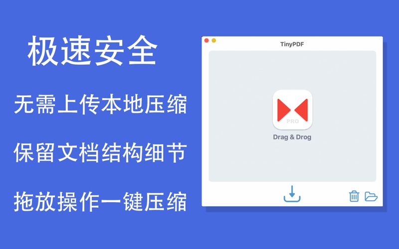 TinyPDF Pro是一款专业的PDF无损压缩工具,可将pdf文档体积减少50%~95%,节省大量存储空间方便网络传输,无需等待上传,本地快速完成压缩。 【主要功能】 1.减少50%~95%体积 2.保留文档原有结构 3.支持批量操作 4.支持拖拽导入 p.s 不支持加密的pdf文档 【联系方式】 Email:tommystudioservice@163.com 修复了一些已知问题