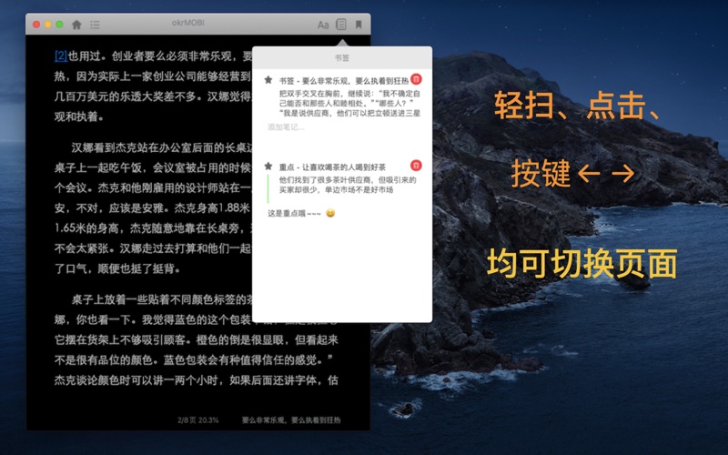 爱阅读是一款功能强大的电子书阅读器,支持多种电子书格式。 ● 支持阅读 TXT、EPUB、CHM、MOBI(Kindle书籍),AZW等 ● 支持文本朗读,多种声音供选择 ● 拖拽书籍或文件夹导入。软件只解析内容,不拷贝原文件,节省磁盘空间 ● 自由拖拽阅读画布尺寸,支持双页阅读 ● 多种翻页方式,给你最快捷流畅的体验。扫动、点击按钮、键盘←→均可翻页 ● 笔记功能。高亮重点内容,一目了然。 ● 批量分类管理图书 Bugs fixed