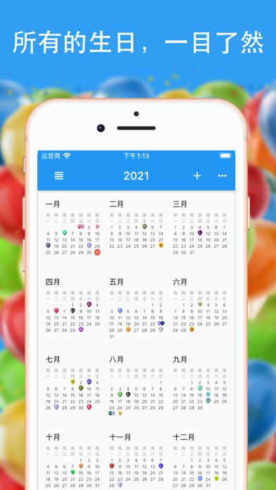 整理您所有的生日。一目了然,随时提醒! 年份视图: 简单的年份概览,快速查看所有内容。 提醒: 在生日前几天设置多个提醒,以便在需要时收到通知。您还可以指定时间。 小工具: 使用我们方便的小工具,直接从设备的主屏幕访问即将到来的生日! 导入: 从联系人或 Excel (.xlsx/.csv) 文件导入。 快速创建: 通过滚动选择日期,创建多个生日。 共享: 以日历 (.ical) 或 Excel (.csv) 文件的形式与家人和朋友分享生日。 该文件可导入应用程序或设备日历。 导出: 将所有生日写入某个日历或保存为 Excel (.csv) 文件。 同步: 将生日与其他日历同步。如果另一个人有访问日历的权限,您可以一起管理它们! 手表伴侣应用程序: 从手腕上直接查看即将到来的生日 • 通过云存储服务商与家人或朋友同步生日信息。 • 修复了主屏幕小部件相关问题。 • 优化了翻译内容(感谢所有贡献者!)