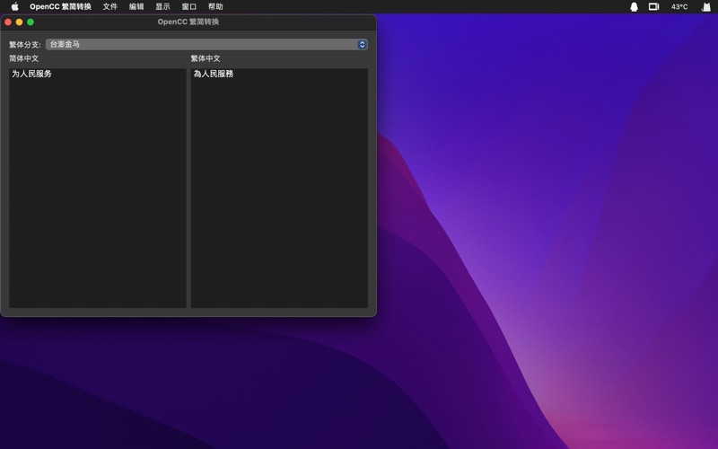 该 App 将 ByVoid 的 OpenCC 模组封装成 macOS 图形介面应用程式,便于对终端机不熟悉的使用者群体们迅速使用 OpenCC 进行简繁转换。 只需要在简体或繁体栏目内输入内容,转换结果便会实时出现在另一个栏目内。 该软体的 Mac App Store 版本收费,费用仅用于抵销 Apple Developer Program 年费会员之用途。如对此心存芥蒂者,可使用 Xcode 手动建置该软体的原始程式码套件:https://github.com/ShikiSuen/OpenCC-GUI/ 该 App 所用到的开源组件: OpenCC (c) 2010 and onwards ByVoid (Jiabao Guo) under Apache License 2.0. SwiftyOpenCC package (c) 2017 and onwards ddddxx (Deng, Xiang) under MIT License. - 为转换结果新增复制按钮。这会将转换结果转储到剪贴簿。 - 针对 macOS 26 优化了使用者介面。