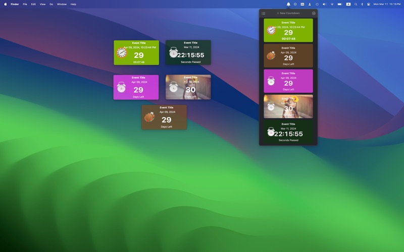 倒计时软件作为一款时间跟踪器一直为你显示距你的重要事情过去或者剩下多少时间, 它一直待在桌面的最下层(所以不会影响你的工作), 并且你可以自由移动它的位置。 用这款软件你可以很方便的跟踪所有的重要事情, 例如: 1. 距举行婚礼日期还有多少天? 2. 离女友生日还有几天? 3. 产品发布日期还有多长时间? 4. 已经戒烟多少天了? 试一试这个款软件吧, 它将会成为你生活的好帮手。 如果你有任何问题, 请发邮件到cocoadevsc@gmail.com; 我会在24小时内给你回复。 Bug fixes and improvements.