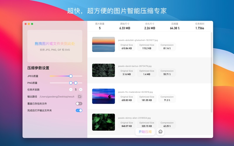 ImageSmith 使压缩和优化您的图片变异常简便。只需点击几下,你就可以批量减少你的图像的文件大小,加快你的网站速度,减少带宽成本。 功能特点: - 支持 JPEG、PNG、GIF、WebP 和 SVG - 在不损失质量的情况下减少你的图像文件大小 WebP Support Resize Image Support Convert Image Format Support