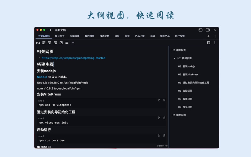 支持思维导图,方便学习与思考; 支持markdown语法,方便记录笔记和博客; 支持导出图片,方便分享内容; 支持一键复制粘贴图片,方便整理工作流程;