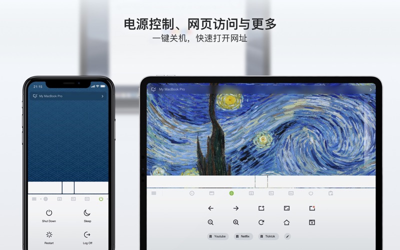将您的 iPhone 或 iPad 变成 Mac 的智能无线遥控器。Remote Mouse™ 可将您的移动设备变为触控板、键盘和鼠标,支持多点触控手势和多媒体控制——做PPT演示、观看电影、睡前一键关机,还有什么比触手可及的手机遥控器更方便的呢! Remote Mouse™ 曾被 CNET、Mashable 和 Product Hunt 报道,全球用户超过 2000 万,被称为目前最优雅易用的电脑遥控应用。 您可以实现: 鼠标 • 像真正的鼠标一样控制光标 • 使用手机陀螺仪移动光标(体感鼠标) • 支持左手模式 键盘 • 远程输入多语言文字 • 支持语音输入(若软键盘支持) • 发送系统和应用快捷键 • 针对 Mac 或 PC 显示适配布局 触控板 • 模拟 Apple Magic Trackpad • 支持多点触控手势 功能面板 • Media Remote:控制 iTunes、VLC、PowerPoint 等播放器 • Web Remote:控制 Chrome、Firefox 和 Opera 浏览器 • App Switcher:快速启动并切换应用 • Power Options:远程关机、重启或睡眠 • 跨设备剪贴板:在手机与电脑间复制粘贴文本和图片 其他功能 • 用手机实体音量键调节电脑音量 • 可设置连接密码保护安全 • 调整功能面板顺序 • 自定义比触控板壁纸 • 切换浅色 / 深色模式 轻松设置: 1. 在 Mac 上下载并安装 Remote Mouse Server:www.remotemouse.net 2. 启动服务器程序(后台运行) 3. 让 iPhone 或 iPad 连接同一 Wi-Fi 网络 喜欢 Remote Mouse 吗? 请 5 星好评,这将给我们这样的小规模独立开发者极大的帮助。 如有建议或问题,请随时联系 support@remotemouse.net,我们非常愿意听取您的反馈。 修复了Media Remote和Web Remote的Bug。