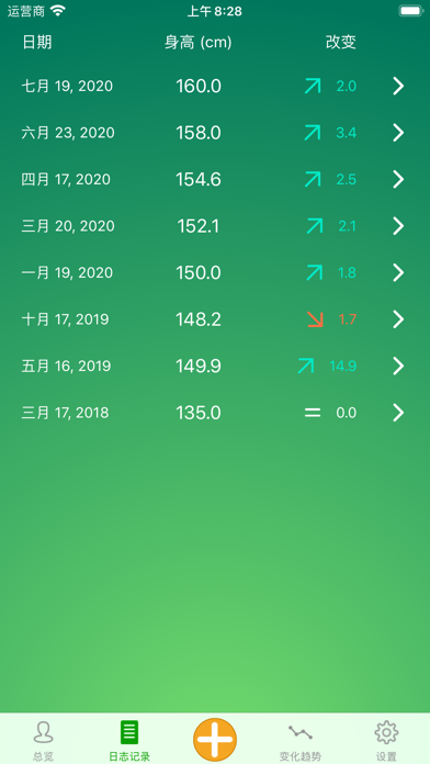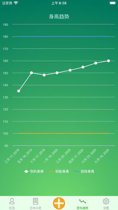 身高记录APP可帮助您记录您的身高变化,并可视化您的身高变化趋势。现在就设定您理想的身高目标并立即开启变化之旅吧! 1. Bug fixes.