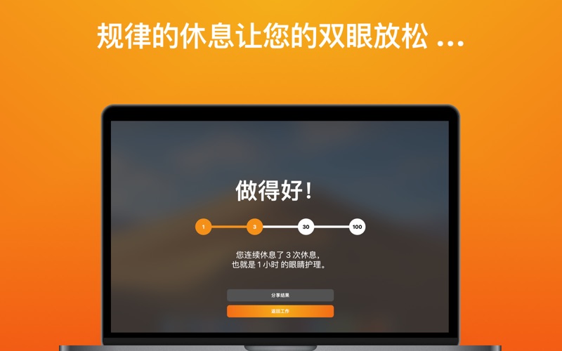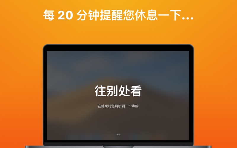 一天下来,是否有头疼、眼睛干涩、发红、疲劳或肩颈酸痛的问题?那么这款应用正是您需要的! 这都是出自电脑视力综合症(简称 CVS)的症状。有多达 90% 的电脑工作者都有这些困扰。 如果您盯着电脑屏幕太久,就没办法改善眼睛疲劳,而且还会衍生许多问题。 Breaks for Eyes 采取 20-20-20 的法则,帮助您改善所有症状、缓解眼睛疲劳和电脑视力综合症,经医学证明有效! 应用程序每 20 分钟都会提醒您休息 20 秒,往 20 英尺(6 米)以外的距离眺望。 如果您正在开会或看电影,可先设置一段时间(30 分钟、1 小时、2 小时、4 小时、1 天)暂停休息提醒。只要在菜单栏点击按钮即可设置。 好好照顾您的双眼吧! 版本3.1.0带来了一些迫切需要的改进: -延长了2、5、10分钟的间歇时间和2小时的间隔时间 -中场休息将不再要求收视率。如果您想对间歇性进行评分,可以从菜单栏中进行评分。 如果您有任何反馈意见,或者愿意分享您发现Intermission的方式,请发送电子邮件至alex@tryintermission.com-谢谢!