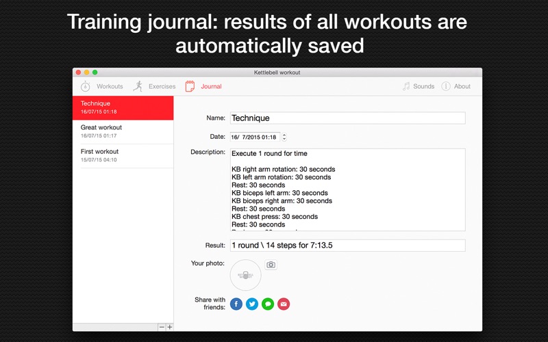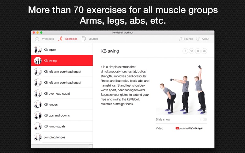 这里有4个原因,你需要锻炼壶铃: 1 - 壶铃练习加强心血管系统和呼吸系统,并包含举重练习 - 有锻炼和现实生活之间没有什么区别。 2 - 壶铃练习不需要大量的时间 - 现在每个人都缺乏时间。 3 - 壶铃锻炼增加力量和耐力 - 在能力长期内进行快速阵挛。 4 - 壶铃训练不会让你错过了训练 - 因为壶并不需要很大的空间,你可以锻炼,无论你想要的。 该应用程序包含9锻炼节,每节有15个训练,没有重复。 并且: - 每一个运动都有详细的描述,照片和视频指令; - 精加工锻炼后,你可以分享到Facebook,Twitter和其他社交网络的结果。 Some bugs fixed Small design changes