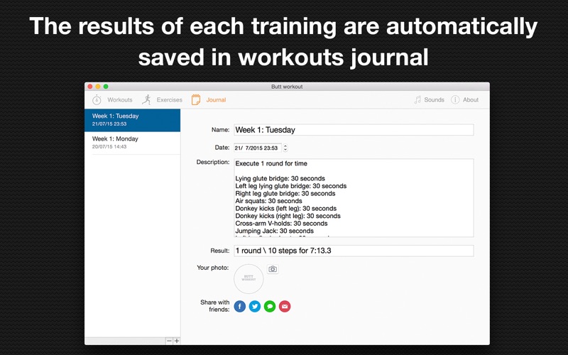女人的臀部的形状必须是美丽的大自然。但女人有不同的机构类型:某人具有良好的臀部从出生,有人已经作出努力。女孩和妇女离不开全面对接,其中许多人会给所有有豪华的形状。但是,我们不要问了:仅8周,一些努力。而且不要忘了吃的健康 - 这是在烹调全面对接一个非常重要的组成部分。 该应用程序包含了8周的培训课程: - 你不需要设备的锻炼; - 每个锻炼是从彼此不同; - 训练的难度级别由天工作周,日增加一周; - 每星期有2个额外的训练:1与瑞士球和1个功能锻炼。 - 每周和每一个额外的锻炼有一个激励人心的描述; 并且: - 每一次的锻炼都有它的详细说明,一步一步的照片和视频指令,并指令动画; - 您的结果保存在锻炼日志; - 当你完成锻炼,分享到Facebook,Twitter和其他社交网络的结果。 - 这些计划是由运动和健身的专业人士创建 Some bugs fixed Small design changes