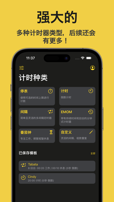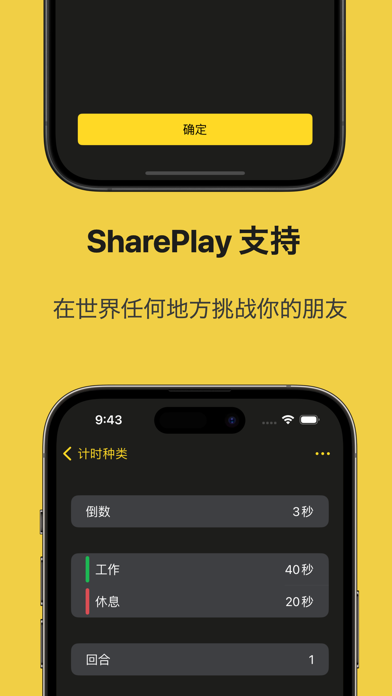 简单灵活的健身和生产力计时器,适用于您的WOD、HIIT训练或任何其他基于时间的活动 多种计时器类型,满足您最复杂的健身需求 支持Apple Watch,可以作为独立应用程序,或作为手机上运行的计时器的控制端 通过在启动计时器时选择活动类型,将锻炼记录到Apple Health上的手表 精美的深色和浅色主题,适用于应用程序和计时器屏幕,以满足您的显示偏好(我们听到了那些深色模式的粉丝!) SharePlay支持允许您挑战世界各地的朋友进行锻炼,并保持您的计时器完美同步 当前支持的计时器列表: - 秒表 - 倒计时 - 简单间隔(A/B间隔+轮次) - 每分钟一次(EMOM) - 番茄工作法 - 自定义 使用条款:https://www.apple.com/legal/internet-services/itunes/dev/stdeula/ 修复了定时器声音无法与背景音乐同时播放的问题