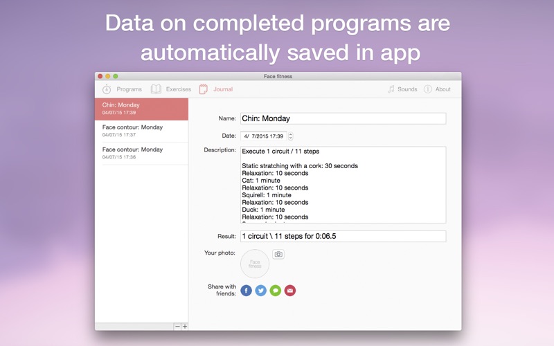 成为年轻10岁的每天10分钟! 不是一个单一的这个世界的女人都希望她美丽的脸被时间感动,我们尽一切可能和不可能推迟时刻的笑容,笑声,欢乐和惊喜的精彩我们的脸的结果变得与小皱纹覆盖。 丽塔Chelmakova是一种流行的音乐频道,影星,而这宝贵的应用程序的主要功臣谁知道真正的美的价格为别人的VJ。由于丽塔,你会知道的秘密怎么看完美的一天中的任何时间,由于一些简单的练习。 这个应用程序是世界上所有女性的秘密武器正是造成通过该57肌肉我们的脸将是完美的色调,这意味着我们的美容会受到保护从早期的衰落,皱纹,失去组织张力,甚至形状变形。 而与此相反,我们的脸轮廓将变得更清晰,更颈部swanlike,与这些练习的帮助下,你甚至可以增加唇部的体积!是的!没有一个单一的外科干预!删除你的皱纹,并防止新的 - 这一切只能通过定期使用此应用程序! 这次演习采取每天只有10 - 15分钟。 现在一切都真的在你的手中! -Eight节他们每个人的s工作有确切的问题区域。 演习-Detailed说明 -Brief,界面友好 你的练习 - 照片插图 你的练习 - 视频说明 -The种类繁多的练习 - 只有最好的和高效率的练习 演习-Elaborated方案 -The练习不要求特殊的准备 -We've准备练习的复杂,全周 面对健身-The最帅辅导员 - 问题的区域被分成方便的分离,这要求制定 -The构造提供机会以制备各个程序,这将是单独有效 Some bugs fixed Small design changes