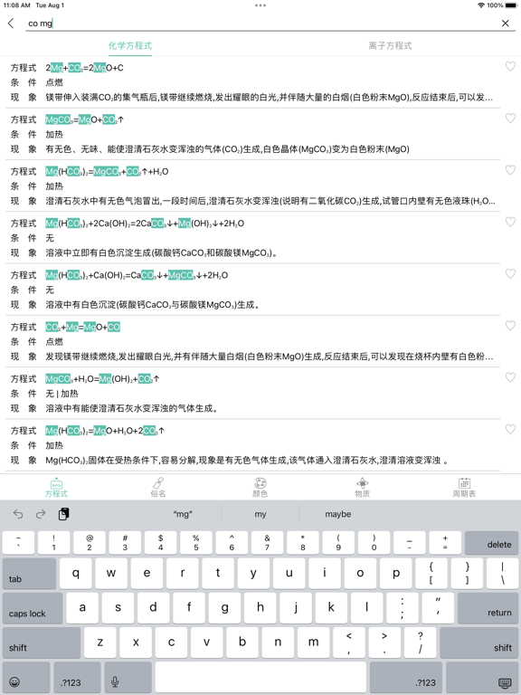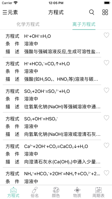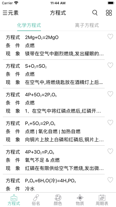 探索化学的奥秘:化学方程式APP引领科学之旅。 化学,这个充满神秘与奥秘的科学领域,你是否曾为繁琐的化学方程式感到困惑?为找不到合适的化学反应式而焦虑?那么,快来加入我们,化学方程式APP将为你打开科学的大门,带你领略化学的魅力! 无论你是一名科研人员、学生还是对化学着迷的爱好者,化学方程式APP都能为你提供全方位的服务,满足你在化学领域的各种需求。 化学方程式APP包含初高中教材中所有的方程式及与其相关的知识点、各省市历年与方程式相关考题的解说、大学化学教材中的大部分基础表格数据、丰富的化学工艺,同时集多项功能于一身,旨在满足你对化学方程式的全方位需求。 化学方程式APP的优势在于它比传统书写方式更加便捷,提供更加准确的结果。它不仅节省了你的时间,还提高了工作效率,使你能够更专注于化学本身的研究。 许多用户对我们的化学方程式APP赞不绝口。一位科研人员表示:“这款APP帮我解决了许多研究中的难题,使我的工作更加高效。”一位中学生则说:“它让我对化学有了更深入的理解,我在考试中取得了更好的成绩。”口碑载道,可见一斑。 现在,是时候采取行动了!立即下载化学方程式APP,开始您的化学之旅!分享给您的朋友和同事,让更多人受益。我们期待您的加入,让我们一起探索化学的无穷魅力! 使用条款:https://www.apple.com/legal/internet-services/itunes/dev/stdeula/ 1、修复周期表崩溃 2、修复数据同步失败 3、修复图片加载失败 4、新增超1500条数据