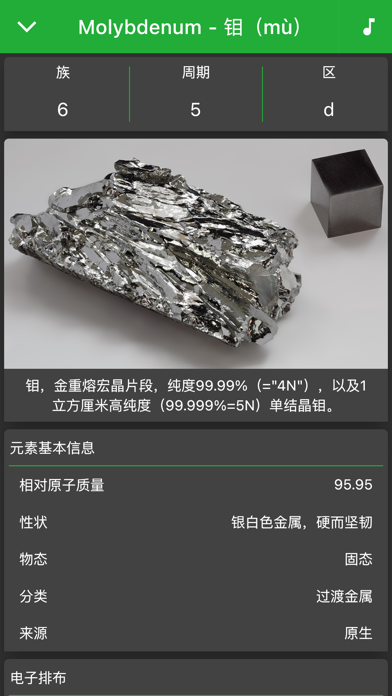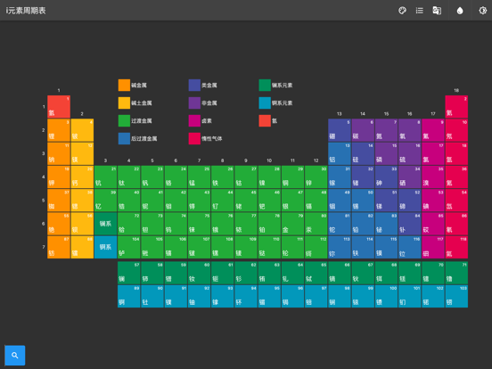 这个图像丰富的应用程序是您需要的唯一元素周期表。 在应用程序中,您将找到有关化学元素的大量数据。所有元素的超过5500个同位素的信息也在应用程序中。 您将学到很多新的和有用的东西,如果你是学生、老师或只是对化学科学或核科学感兴趣,这是理想的选择。 该表以国际纯粹与应用化学联合会(IUPAC)批准的长格式为核心。除了元素之外,您还可以使用溶解度表。 - 当您将手指移动到任何元素上时,都会提供不断更新的信息。 - 中文和普通话拼音。 - 每个项目都有一个元素的图像和一个电子配置的图像。 - 元素的发现、第一次分离、命名者的科学家信息。 - 内置溶解度表。 - 要查找任何元素,您可以通过键入任何字符来使用搜索。 - 超过5500种同位素的信息。 - 动画显示信息。 - 可自由切换显示IUPAC命名或CAS表示法。 修复了镎相关图片的错误,优化了一些内容。
