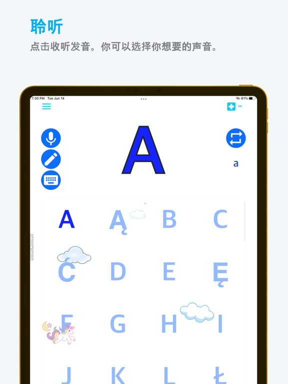 通过视觉联想技巧,轻松学习 波兰语。从字母到日常对话,Emme 波兰语 让语言学习变得有趣又轻松! Emme 波兰语 是您掌上的私人语言老师。借助图像联想法,学习 波兰语 变得轻松愉快。无论您是巩固基础、提升口语,还是系统学习新知识,Emme 波兰语 都会陪伴您一路前行。 # Emme 波兰语 独特的学习方式 • 视觉联想学习:将生动图像与单词关联,加深记忆效果。 • 多样化学习内容:从字母、数字、词汇、句子到日常会话,提供系统的学习路径。 • 游戏化学习体验:通过积分系统与趣味挑战保持学习动力。 • 发音练习:聆听母语者的发音,练习标准语音。 • 写作练习:通过 AI 手写识别功能进行书写与听写练习。 • 个性化学习节奏:根据自己的节奏进行学习,随时随地都可学习。 # 学习内容包括 • 字母与数字:从基础开始掌握语言技能。 • 基础词汇:结合视觉元素轻松记忆单词。 • 实用对话:涵盖旅游、购物、问候等日常交流表达。 • 百科知识:结合维基百科了解波兰语背后的文化背景。 # 支持的语言 本版本专注于教授 波兰语。 # 有趣的学习体验 • 可爱角色陪伴:在学习之路上结识有趣的伙伴。 • 直观界面:设计简洁,任何人都能轻松使用。 • 多样输入方式:支持麦克风、手写笔、键盘等多种方式参与学习。 • 成就感提升:随着学习进度获得奖励和满足感。 # 为什么选择 Emme 波兰语? • 有效的学习法:通过图像联想加强长期记忆。 • 趣味学习体验:告别枯燥死记硬背,让学习充满乐趣。 • 随时随地可学:在通勤途中或短时间内高效学习。 • 适合所有年龄段:无论是儿童还是成人,都能轻松开始学习波兰语。 # 免费开始使用! Emme 波兰语 提供每日免费学习点数和基本功能。通过应用内购买升级为高级版,即可解锁无限学习点数与更多学习内容。 立即开启与 Emme 波兰语 的语言之旅,体验学习波兰语原来也可以如此有趣! New Features • Faster app launch for a smoother start. • Added a shuffle option to Auto Play for learning content. • Refreshed app icon on Mac for a cleaner look. • Updated UI with a modern glass-like texture. • Enhanced UX tailored to age-specific ratings. • App now adapts to the device’s system text size for improved accessibility. • Updated Popup Quiz UI. • Added subtle motion effects to learning content for a more engaging experience. Bug Fixes • General improvements and stability enhancements