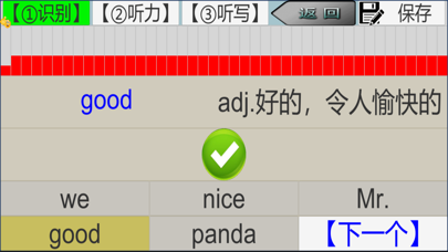 包含: 北京市仁爱教育研究所 北京教育出版社: 七年级(上册,下册)(2012),八年级(上册,下册)(2013),九年级(上册,下册)(2013) 特点: 1.通过【识别】【听力】【听写】三步记单词,调动多个感官快速且牢固的课文对应的英语单词。 【识别】:词义与单词的关联 【听力】:单词声音与词义关联 【听写】:英语字符与单词关联 像有耐心家长陪同一般,循序渐进。 2.以课为单元记忆单词 这样与课文更好的衔接,加速理解课文。 3.记忆曲线 单词出现遵循记忆曲线,记忆更轻松和牢固。 4.记忆状态即时可见 记单词更有成就感,降低厌烦情绪,提高记忆效率。