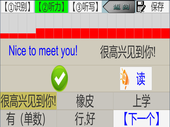 包含: 湖南教育出版社、山东教育出版社(三年级起点):三年级(上册,下册)(2012),四年级(上册,下册)(2013),五年级(上册,下册)(2013),六年级(上册,下册)(2013) 特点: 1.通过【识别】【听力】【听写】三步记单词,调动多个感官快速且牢固的课文对应的英语单词。 【识别】:词义与单词的关联 【听力】:单词声音与词义关联 【听写】:英语字符与单词关联 像有耐心家长陪同一般,循序渐进。 2.以课为单元记忆单词 这样与课文更好的衔接,加速理解课文。 3.记忆曲线 单词出现遵循记忆曲线,记忆更轻松和牢固。 4.记忆状态即时可见 记单词更有成就感,降低厌烦情绪,提高记忆效率。