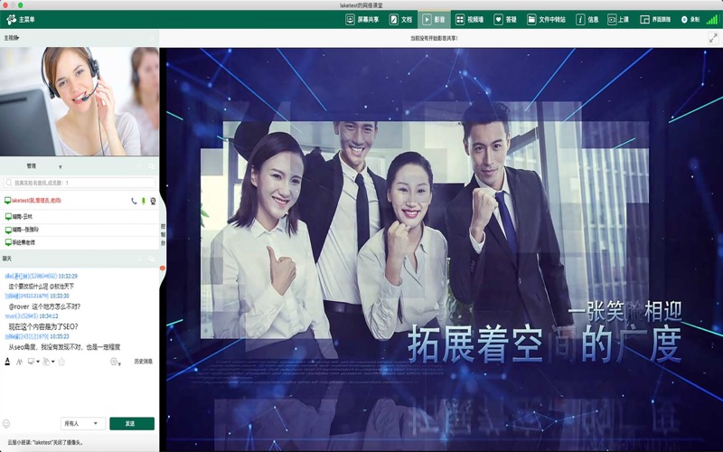 简单易用,无需任何培训即可上手,一键预约安排,立即发送通知所有学生,学生无需注册,点击链接直接进入课堂。 提供近乎完全高保真的语音质量,音质还原度高,而且稳定可靠。高质量语音编码技术,更适合中国互联网网络环境。 随时智能监测用户的网络状况,当网络状况不佳时,启动智能编码和流控,确保语音顺畅,实践中可以适应50%的网络丢包环境。 1. 系统版本适配;