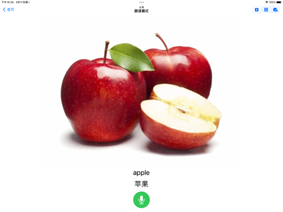 这是一款专门为幼儿和初学者设计的英语学习 App。该应用旨在为用户提供英语启蒙,学习一些常用单词读音,并通过文字和图片相结合的方式来帮助用户记忆单词。用户可以轻松地学习不同种类的单词,如水果、蔬菜、农场动物、野生动物、食物、饮料、交通工具、海洋动物、运动、颜色、昆虫、形状、数字和字母等。 主要功能: 1. 单词分类:用户可以根据自己的需求选择不同分类的单词来学习。 2. 单词发音:用户可以通过点击卡片听取单词的英语发音,并可以通过点击母语单词文字来发出母语的发音。 3. 图片显示:每个单词卡片都配有对应的图片,可以帮助用户更好地理解单词的含义,加深记忆。 4. 多语言支持:这个应用支持多种语言,用户可以在手机的设置里选择所需的语言,方便学习。 5. 跟读模式:用户可以在跟读模式下,滑动页面自动播放单词的读音,然后通过点击录音按钮来跟读,巩固发音技能。 6. 问答模式:在问答模式下,用户可以听取单词的读音后,选择相应的图片,提升单词记忆效果。 7. 良好的用户体验:界面设计简洁,易于操作,让用户在学习英语的过程中感到舒适和轻松。 如果你正在寻找一款优秀的英语启蒙学习 App,那么这个应用是你的不二选择。 小优化,体验依旧稳定流畅