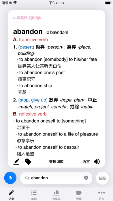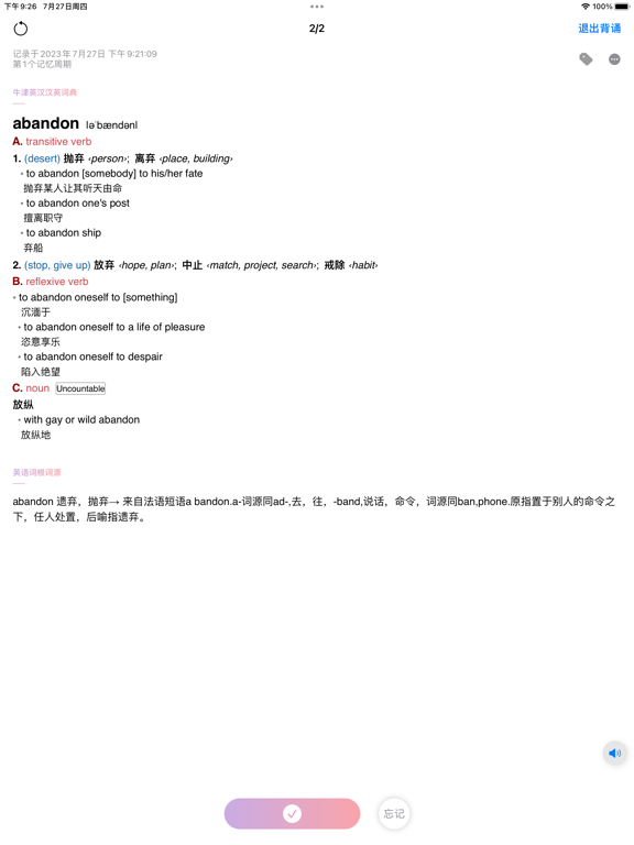 可能是查单词速度最快的 app,记录的单词会永远保存,支持标签管理、模糊搜索,致力于打造最极致的单词知识库软件。 背单词算法来自备受推崇的《17 天搞定 GRE 单词》一书,从记忆学的规律出发,以适当的记忆标准,用科学合理的记忆周期和严密的统筹安排来量身定制学习规划,为考生提供短时快速记忆单词的经典方法。每个单词的背词循环包括 8 个复习点,能够最大限度地提高背单词的效率、延长单词的记忆时间,在过去年数十万名用户的实践当中,已经得到了很好的证明。 iPhone、iPad、Mac 多平台,支持云同步与备份。 - 根据《17天搞定GRE单词》一书中的8个遗忘周期科学背诵单词,在单词需要复习时自动发送通知提醒,让背单词不再痛苦,记忆更加牢固。 - 显示词根词缀。 - 可以自己编辑单词的释义和例句。 - 超过30万条英、美真人发音。 - 支持查询与记录词组。 - 支持导入 Kindle 生词本。 - 支持谷歌翻译,便于记录词组、句子、专业词汇、小语种语言等词典中不存在的内容,可以自动检测并针对一百多种语言进行翻译。 - 可以给单个单词打多个标签,同时也可以检索包含某个或多个标签的所有单词,便于高效分类与整理。另外也可以针对标签安排单词背诵。 - 支持 Action Extension,从任意软件中查词并存储至生词本。 功能: - 内置词典,自动查询。 - 发音语速自由调节。 - 随时将单词生成表格并导出。 - 可以记录例句,利用语境记单词。 - 全局搜索单词/释义/例句。 - 背单词可以指定某些单词先出现中文,再出现英文。 - 纯正发音,离线朗读,不需要请求网络。 - 四种排序模式。 - 记录单词时支持输入中文进行查询。 - 没有广告。 - 会背的单词可以归纳起来,同样也不会丢失。 - 背单词内部乱序,记忆更科学。 - 3D Touch 快速记单词。 - 不会背的单词系统会自动安排加背。 - 自动检测剪贴板中的单词。 - 自动列出需要复习的单词。 - 列表可以隐藏中文/英文便于复习。 - 随机打乱单词列表。 - 在 iPad 上使用分屏功能时,在其他软件中拷贝单词,生词本会立即查询单词 用户政策条款:https://github.com/josephchang10/privacy-policy/blob/master/生词本用户协议.md 有任何问题,欢迎联系作者: 微博@张嘉夫 修复了一些问题