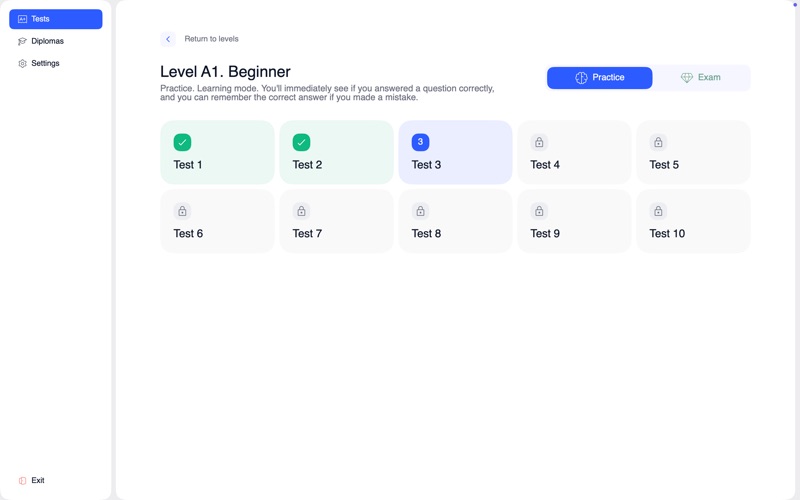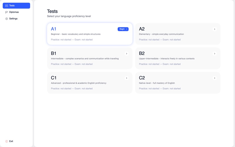 《English Tests: 学习英语的软件》是您检验和提升英语水平的完美工具。 您可以选择从 A1 到 C2 的各级别测试,并按照自己的节奏练习。每项测试都旨在模拟真实的语言使用场景,帮助您清晰地了解自身的优势和需要改进的地方。 准备好迎接挑战了吗?试试考试模式,在真实的英语环境下进行测试,并获得级别证书。 无论您是英语初学者还是目标是达到高级流利水平,《English Tests: 学习英语的软件》都能帮助您追踪学习进度,自信地迈向更高层次。 功能: A1 至 C2 级别的英语测试 清晰的级别结构 考试模式及证书 适合自学和复习 简洁、专注、高效 测试您的英语水平,证明您的能力,超越自我。 Privacy Policy: https://evgeniyasench.tilda.ws/privacypolicy Terms of Use (EULA): https://www.apple.com/legal/internet-services/itunes/dev/stdeula/