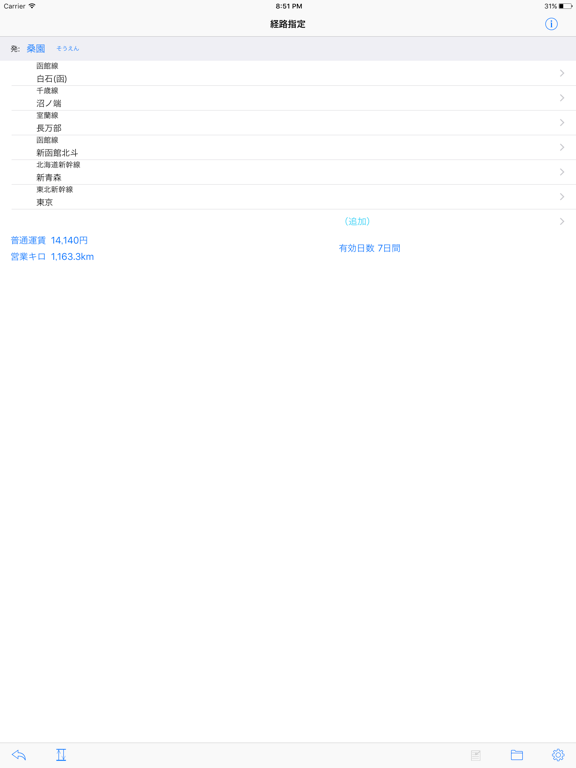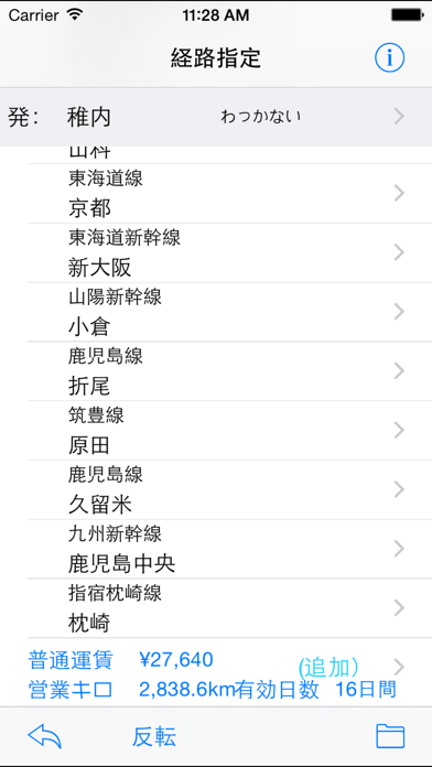 「経路運賃キロ計算アプリ」は、JRグループ路線の指定した経路の運賃額と営業キロを表示するものです。 一般的なルート検索アプリとくらべ、時刻を指定した最適化経路検索や、特急券、割引切符の情報は扱っておりませんが、複雑な経路を手動で平易に指定することができます。 普通旅客運賃計算経路の連続した区間を片道1回乗車の片道(一筆書き)および往復の乗車券の運賃を計算するものです。JR旅客各社以外の路線には対応していません。 JR6社の全路線・全駅、JR東日本BRT路線と一部のJRの優等列車が通過するその他会社線区間を掲載しております。 本ソフトウェアの使い方は、 - 長距離鉄道利用の旅行のルート計画 - 複雑な経路の運賃計算 - 任意の区間の営業キロ、計算キロを調べる - 乗車券の有効日数を調べる - 大回り乗車券のプラン作成 - 青春18きっぷや各種割引切符で旅行にいってどれだけ得をすることができたか、または普通に乗車券を購入したほうが安いかの判断材料とする - 目的地の前後の値段を知る - 途中分割で運賃が安くなるか - 脳内旅行をしながら、予算を立てる などご活用ください 機能概要 - 各種旅客営業規則 - JR旅客会社6社全駅全路線 - JR線が通過する会社線(青い森鉄道、IGRいわて銀河鉄道、北越急行、伊勢鉄道、智頭急行、京都丹後鉄道、土佐くろしお鉄道、 えちごトキめき鉄道(妙高はねうまライン、日本海ひすいライン)、あいの風とやま鉄道、IRいしかわ鉄道、福岡市交通局、しなの鉄道、松浦鉄道、近鉄大阪線・山田線、南海電鉄高野線、東海交通事業城北線、愛知環状鉄道線、東京メトロ東西線・千代田線、鹿島臨海鉄道、肥薩おれんじ鉄道、阿佐海岸鉄道、ハピラインふくい) - IC運賃 - 株主優待割引 - 往復割引 - 学割・小児運賃 - 乗車券の有効日数 - 経路保存 - 結果を外部アプリへエクスポート - 最短経路 * 通常発券されないルートや廃線、休止区間も指定できる箇所がありますのでご注意ください。 その他、詳細はサポートページを参照ください。 - 会社線小児運賃10円未満は数の切捨て→切上げ - 愛知環状鉄道線 - 東海交通事業城北線 - ハピラインふくい - 肥薩おれんじ - えちごトキめき鉄道運賃改定 - 幹線運賃 321〜340km が、¥5,720 → ¥5,790 となっていた不具合を修正 - 大阪環状線遠回り指定時に旅客営業規則第86条などの規則が適用されていない不具合を修正 - 旅客営業規則第160条の4あたりの一部対応
